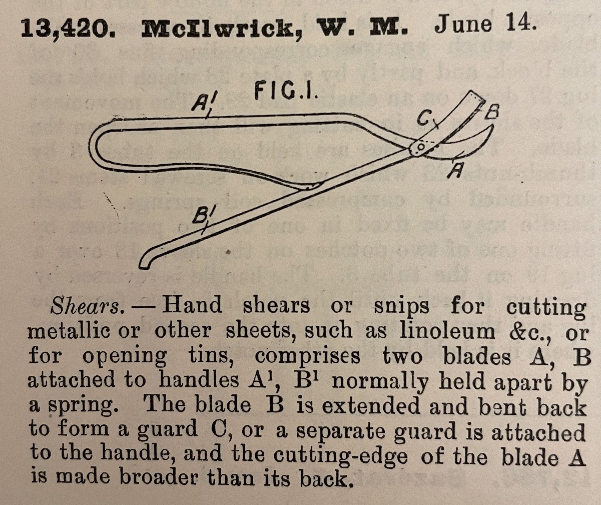 1900s, british, patent summary, shears, snips, mcilwrickDescription