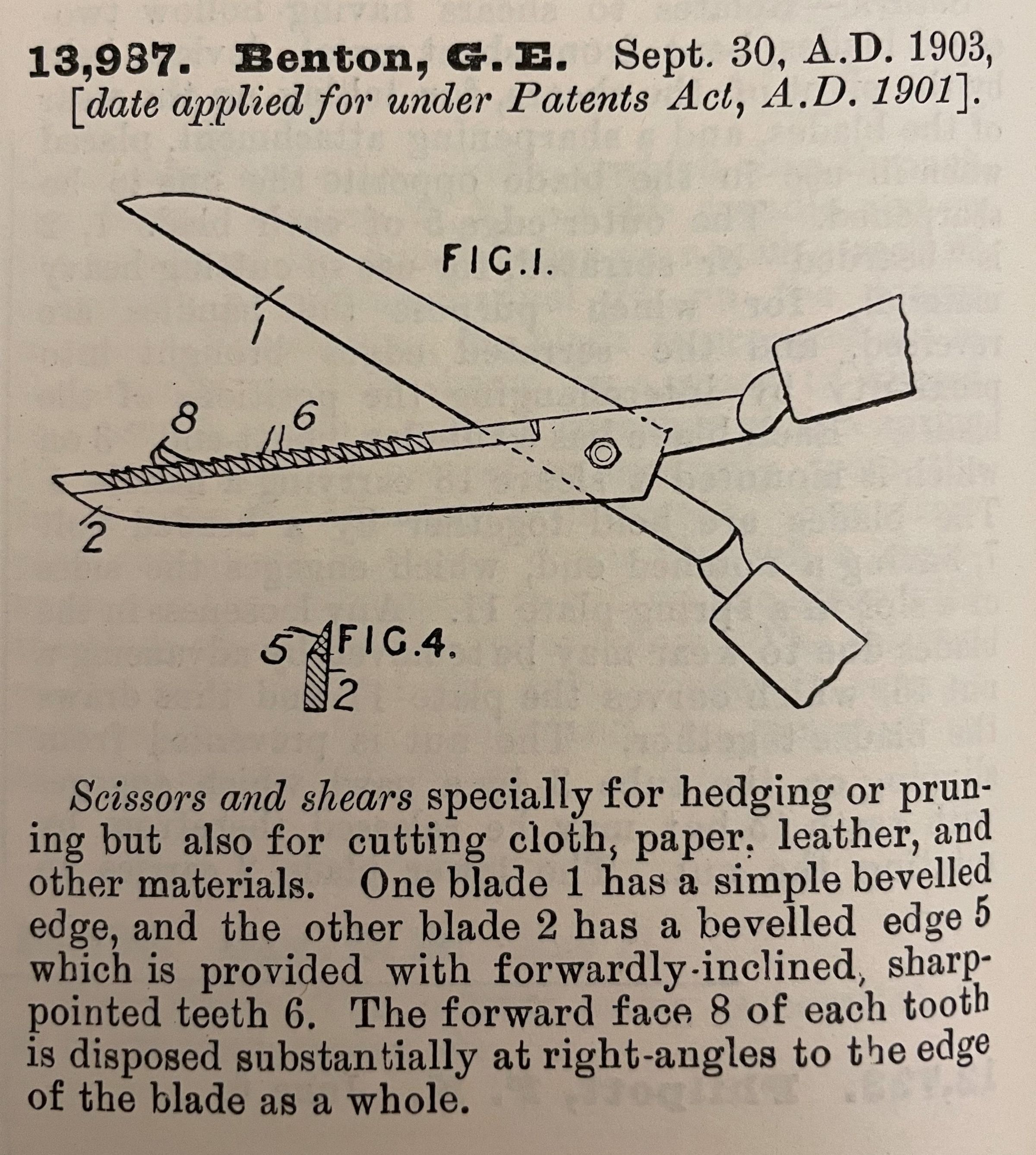 1900s, british, patent summary, scissors, shears, bentonDescription