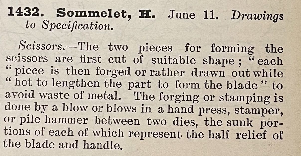 1800s, patent summary, british, sommelet, scissorsDescription