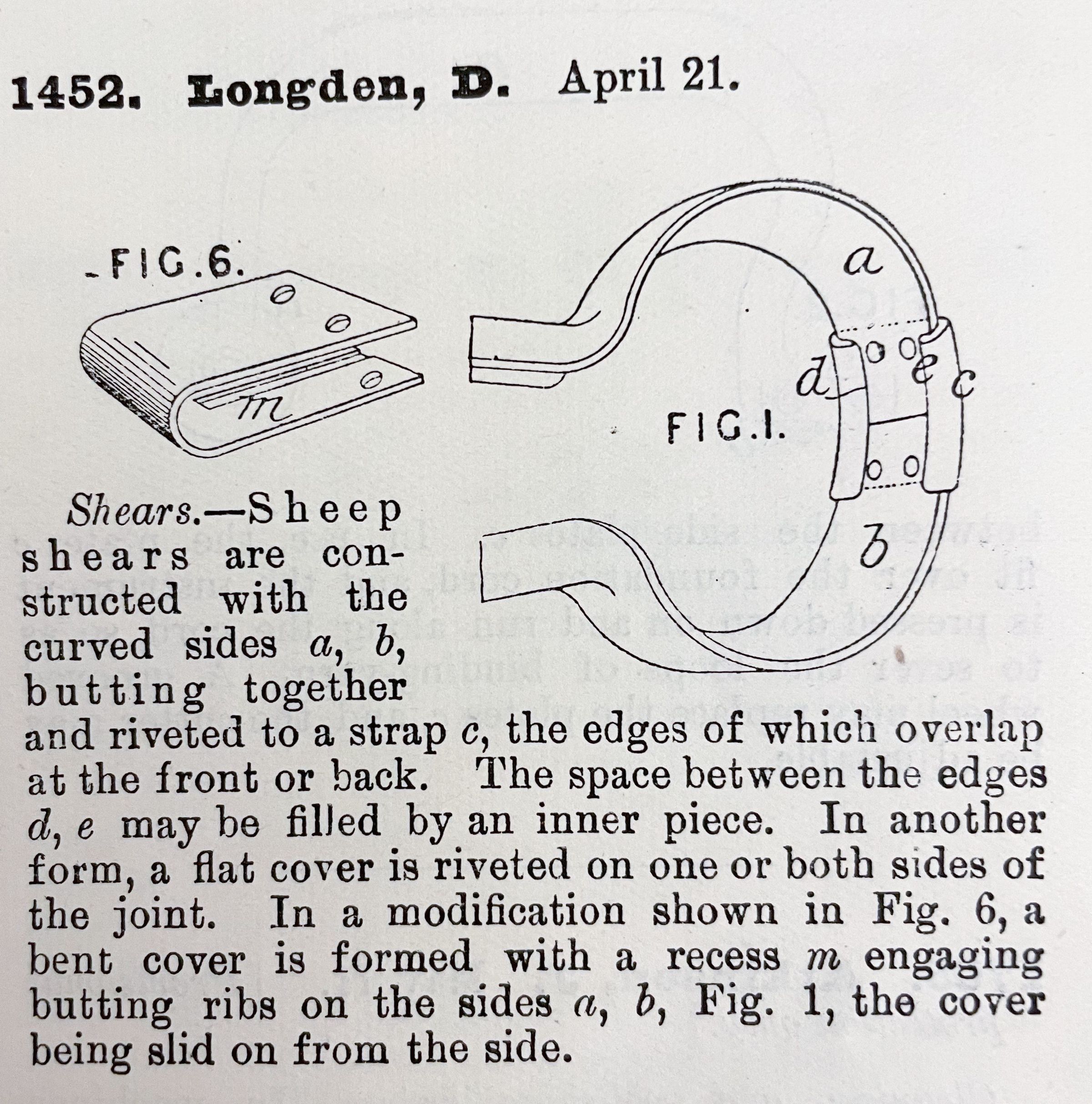 1800s, british, patent summary, shears, sheep, longdenDescription