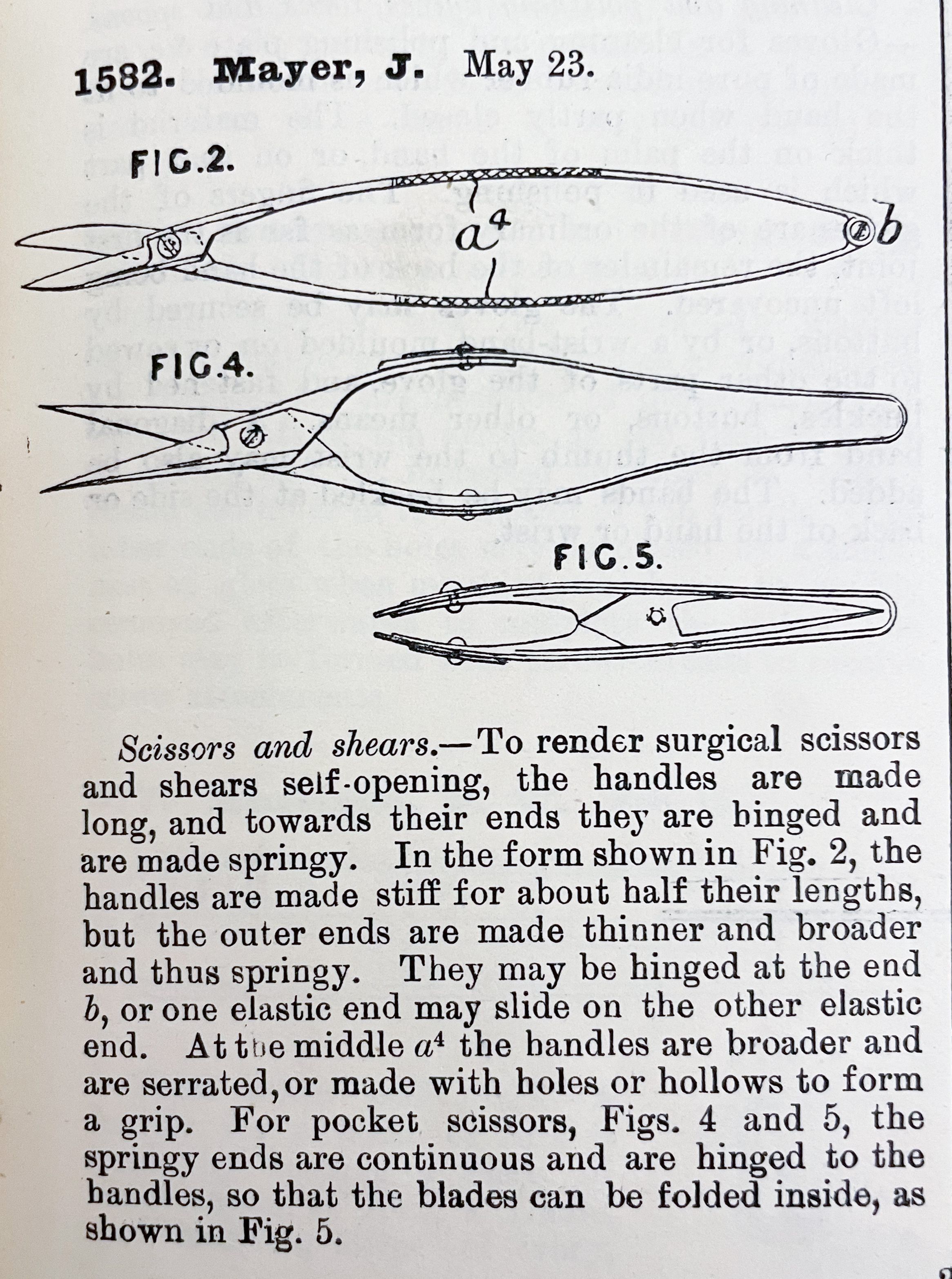 1800s, british, patent summary, scissors, shears, surgical, mayerDescription