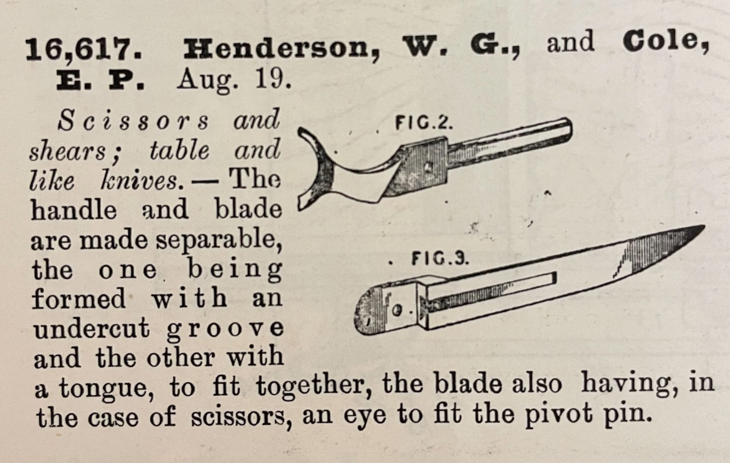 1900s, british, patent summary, scissors, shears, henderson, coleDescription