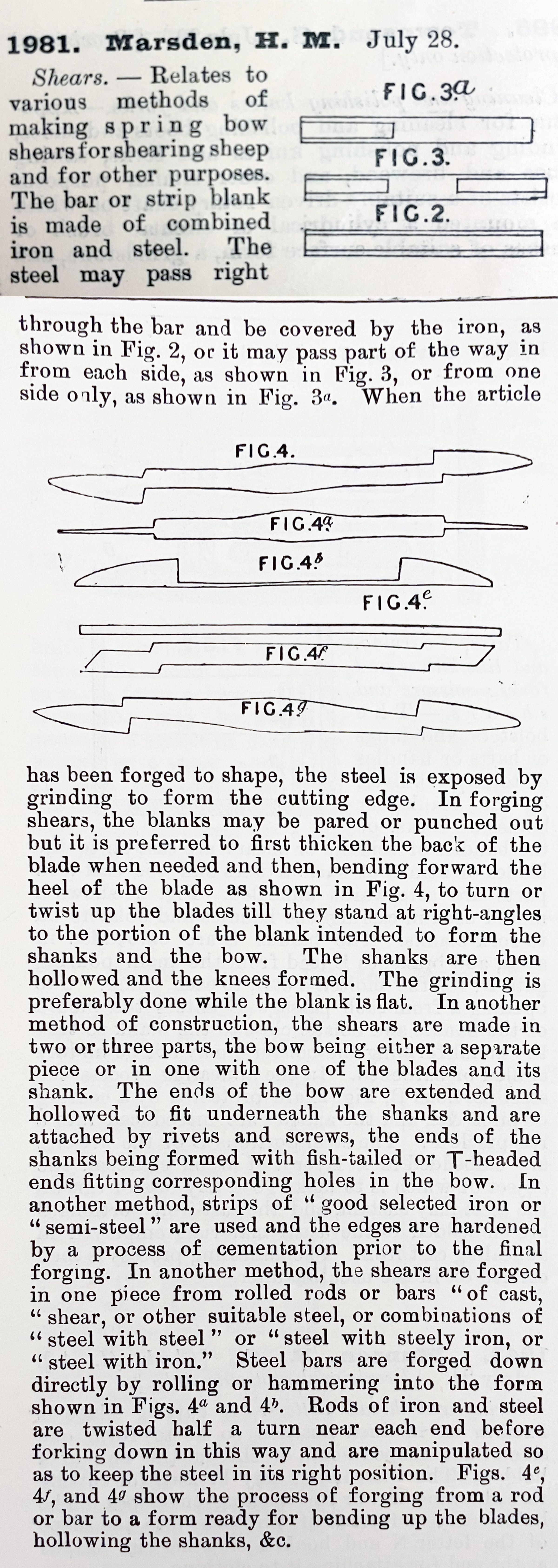 1800s, british, patent summary, shears, sheep, marsdenDescription
