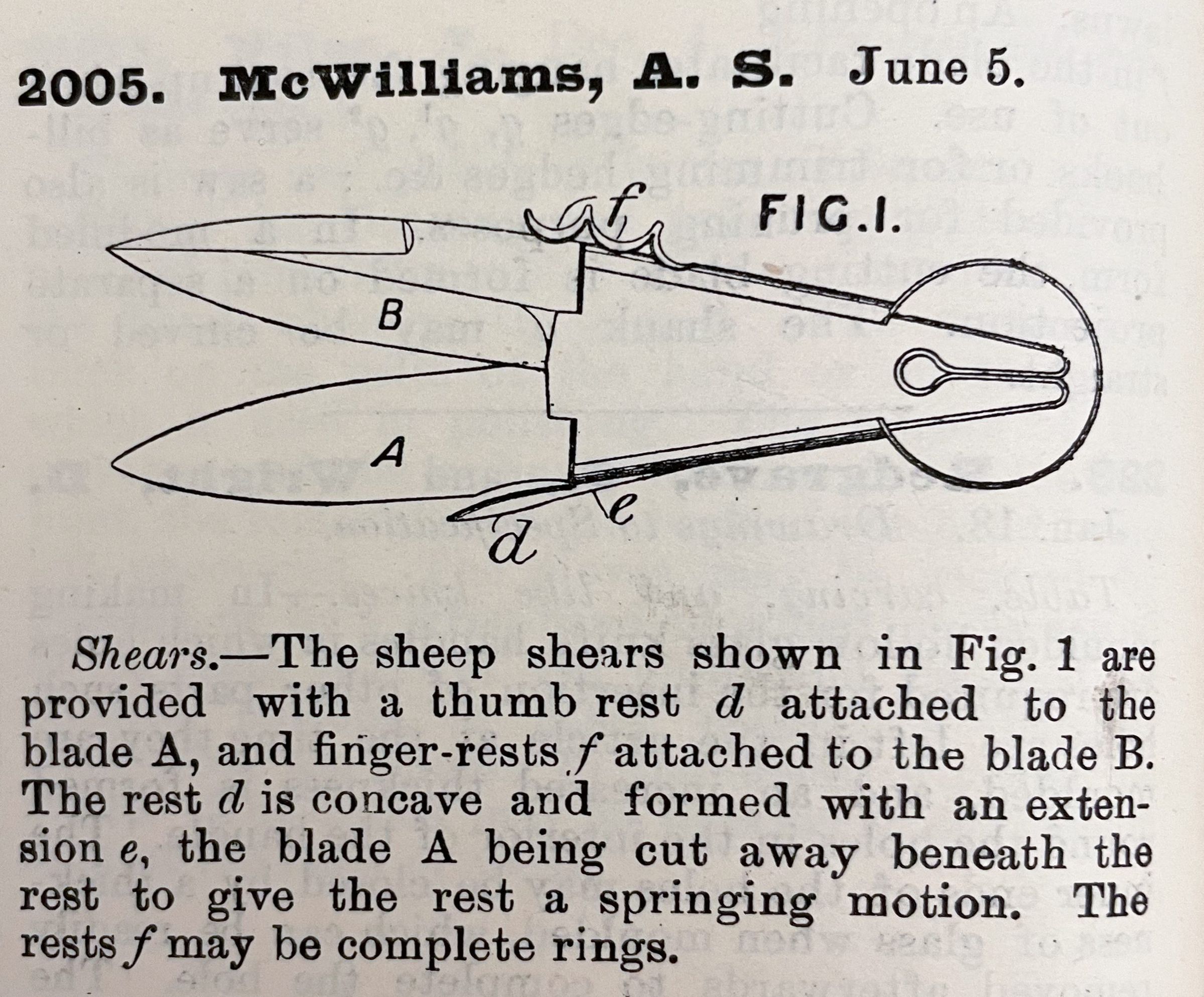 1800s, british, patent summary, shears, sheep, mcwilliamsDescription