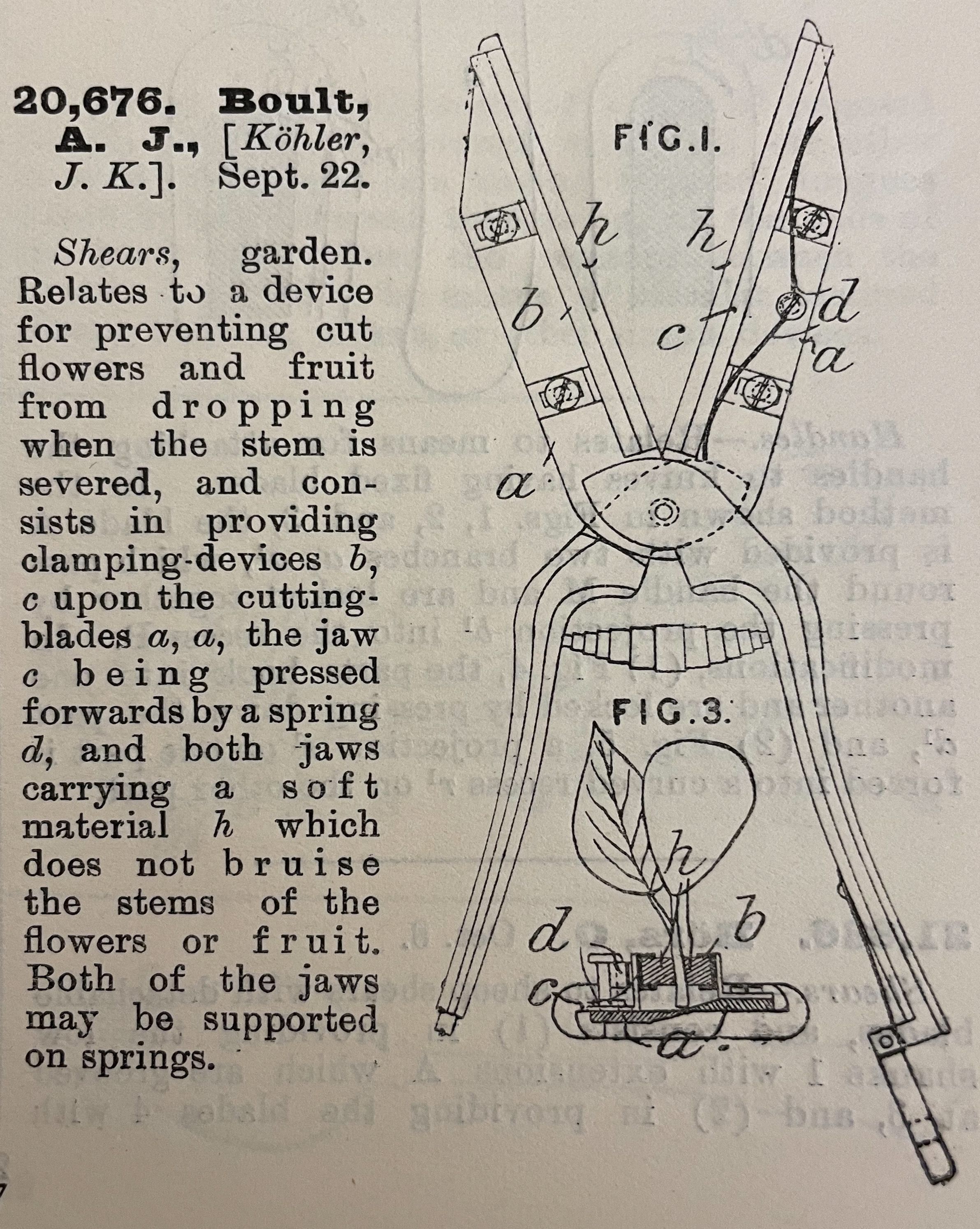 1900s, british, patent summary, shears, garden, boult, köhlerDescription