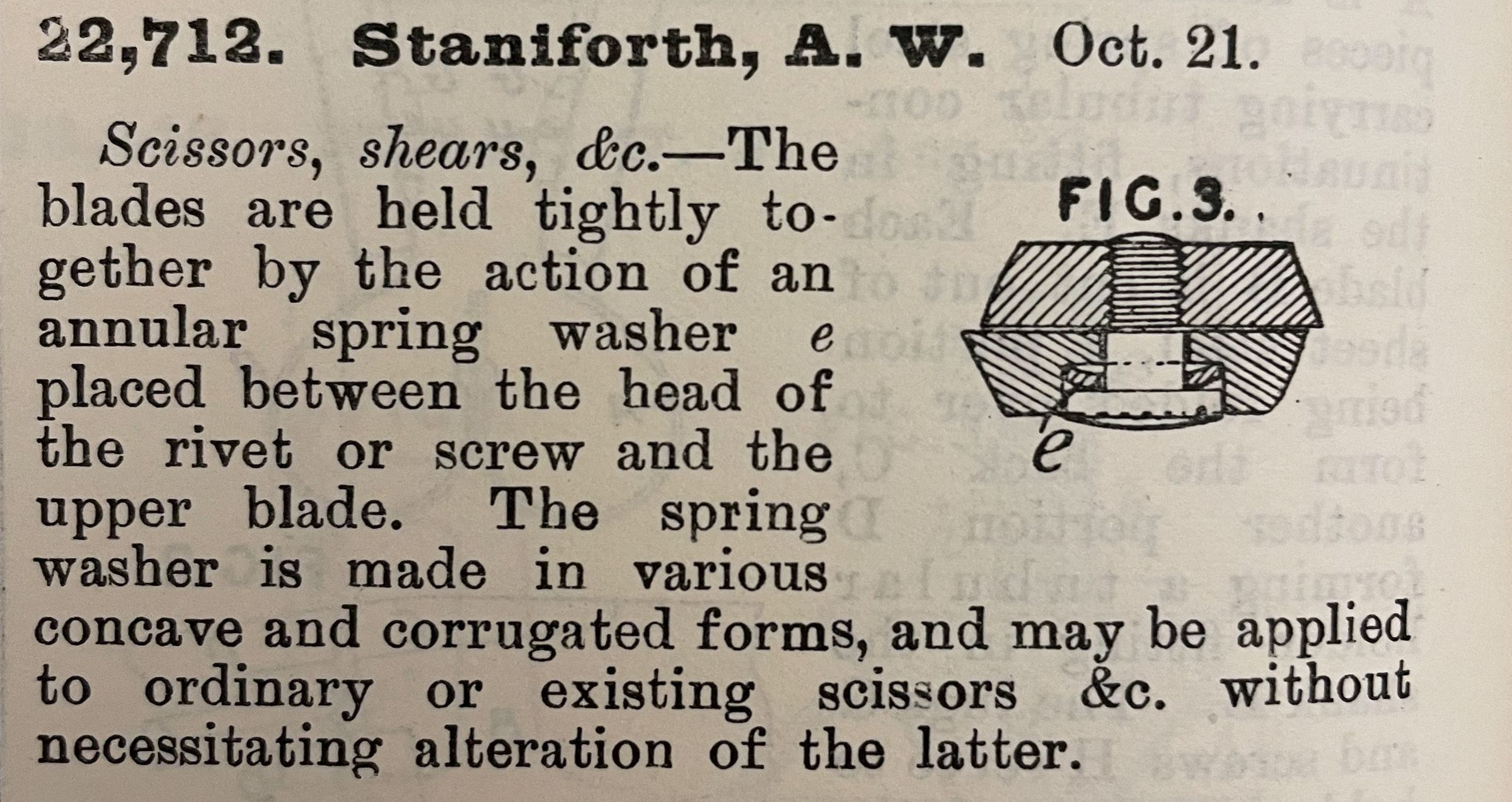 1900s, british, patent summary, scissors, shears, staniforthDescription