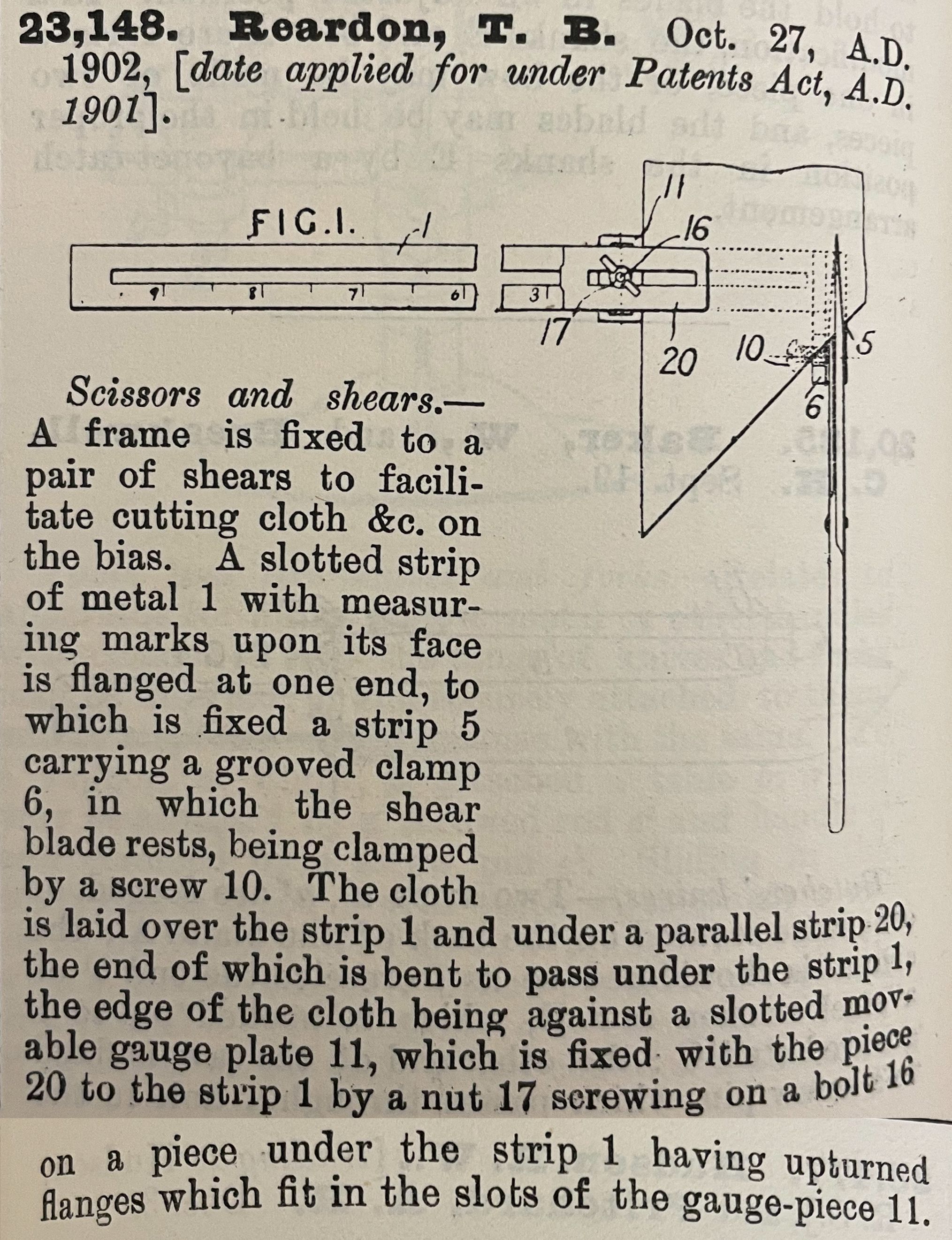 1900s, british, patent summary, scissors, shears, reardonDescription