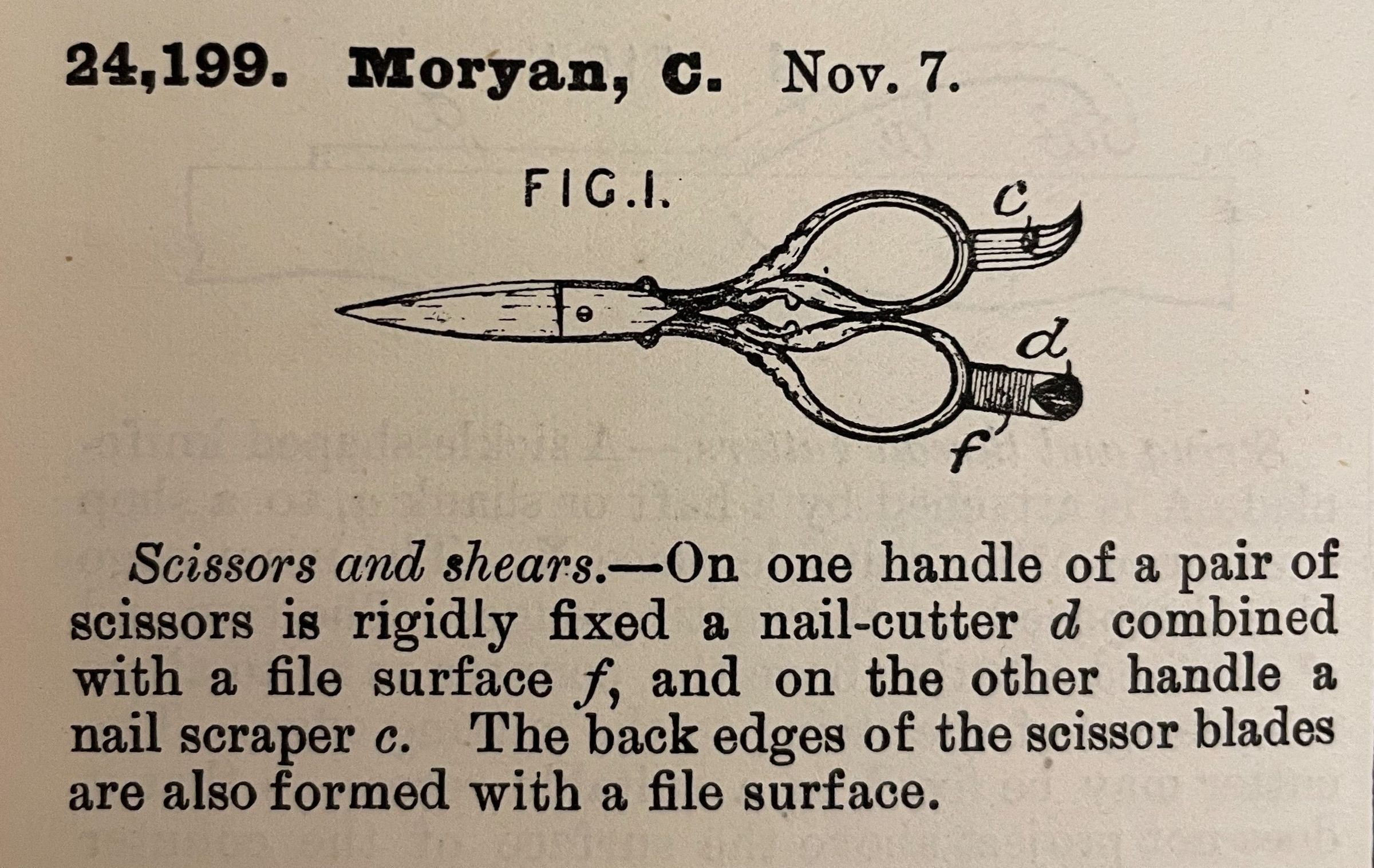 1900s, british, patent summary, scissors, shears, nails, moryanDescription