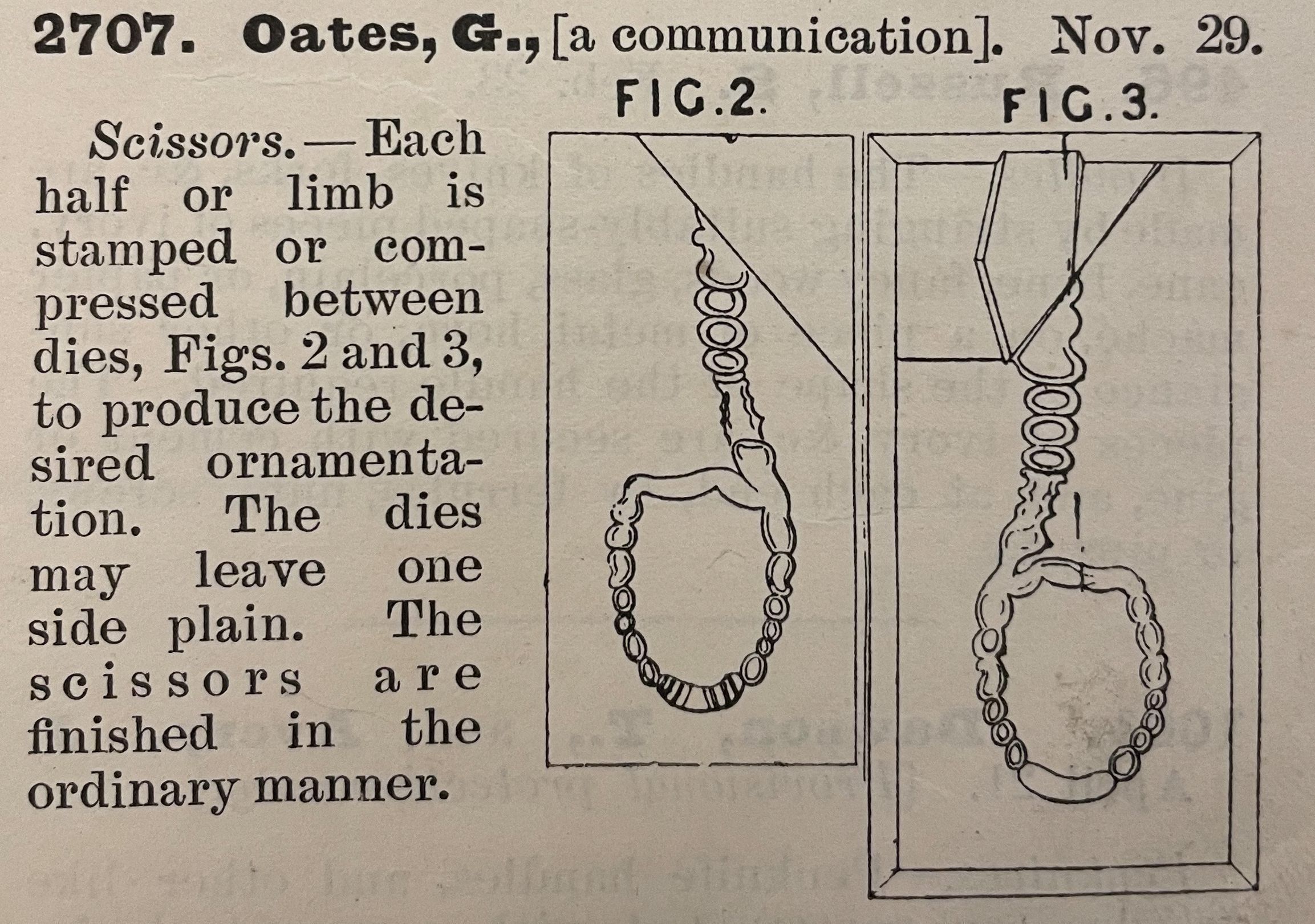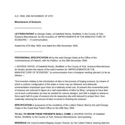 oates, 1800s, scissors, patent summaryDescription