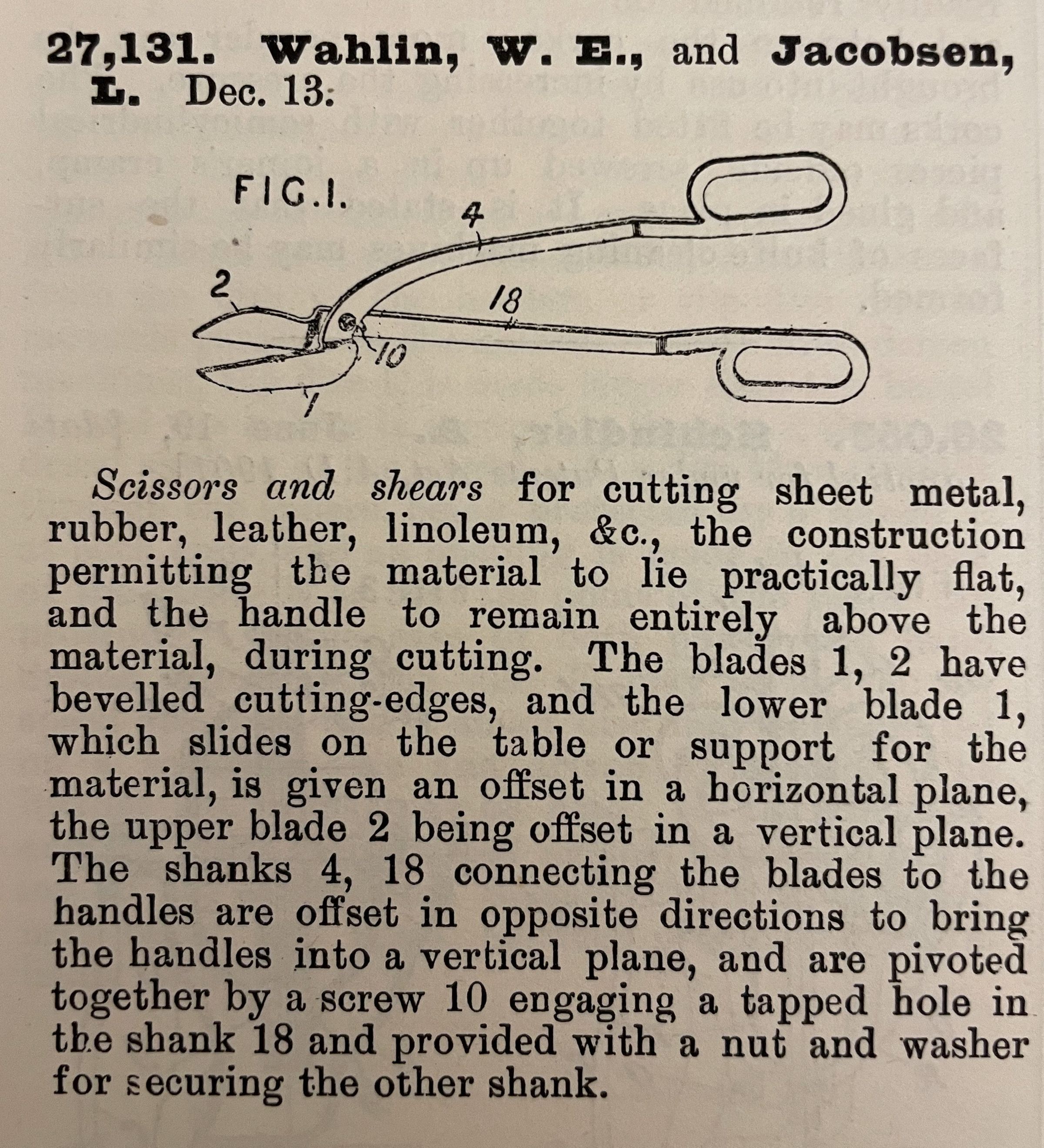 1900s, british, patent summary, scissors, shears, wahlin, jacobsenDescription