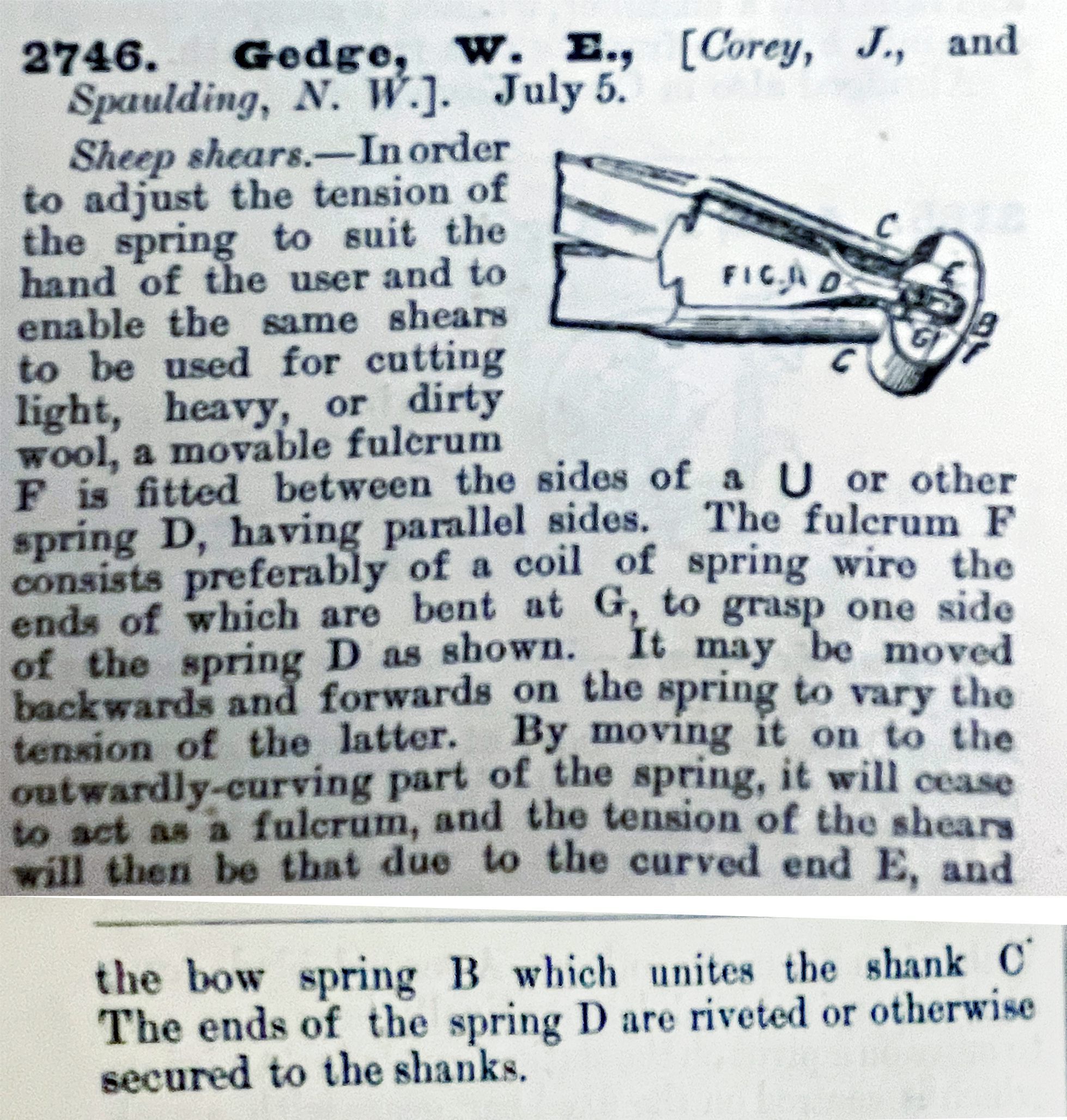 1800s, british, patent summary, shears, sheep, gedge, corey, spauldingDescription