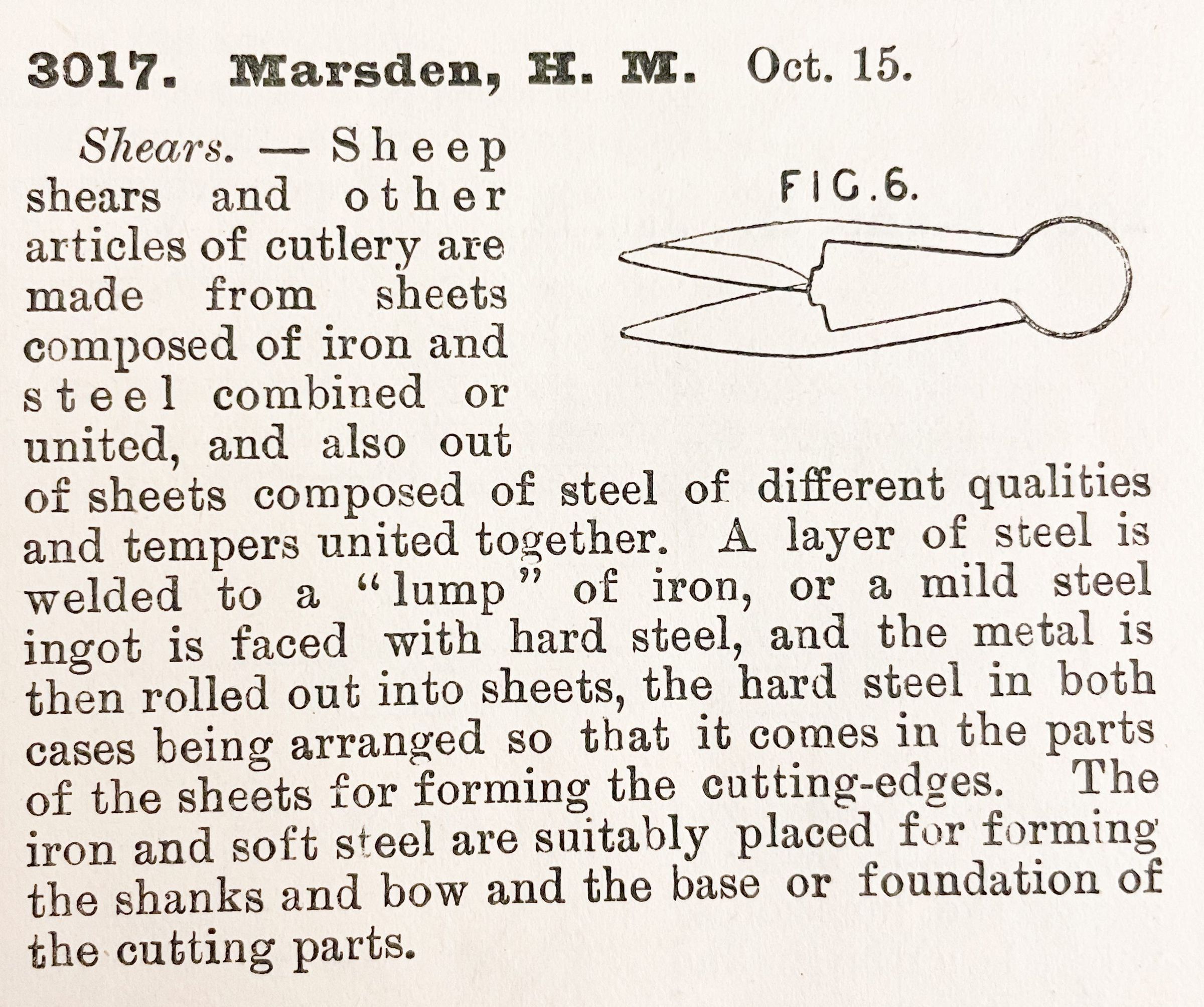 1800s, british, patent summary, shears, sheep, marsdenDescription