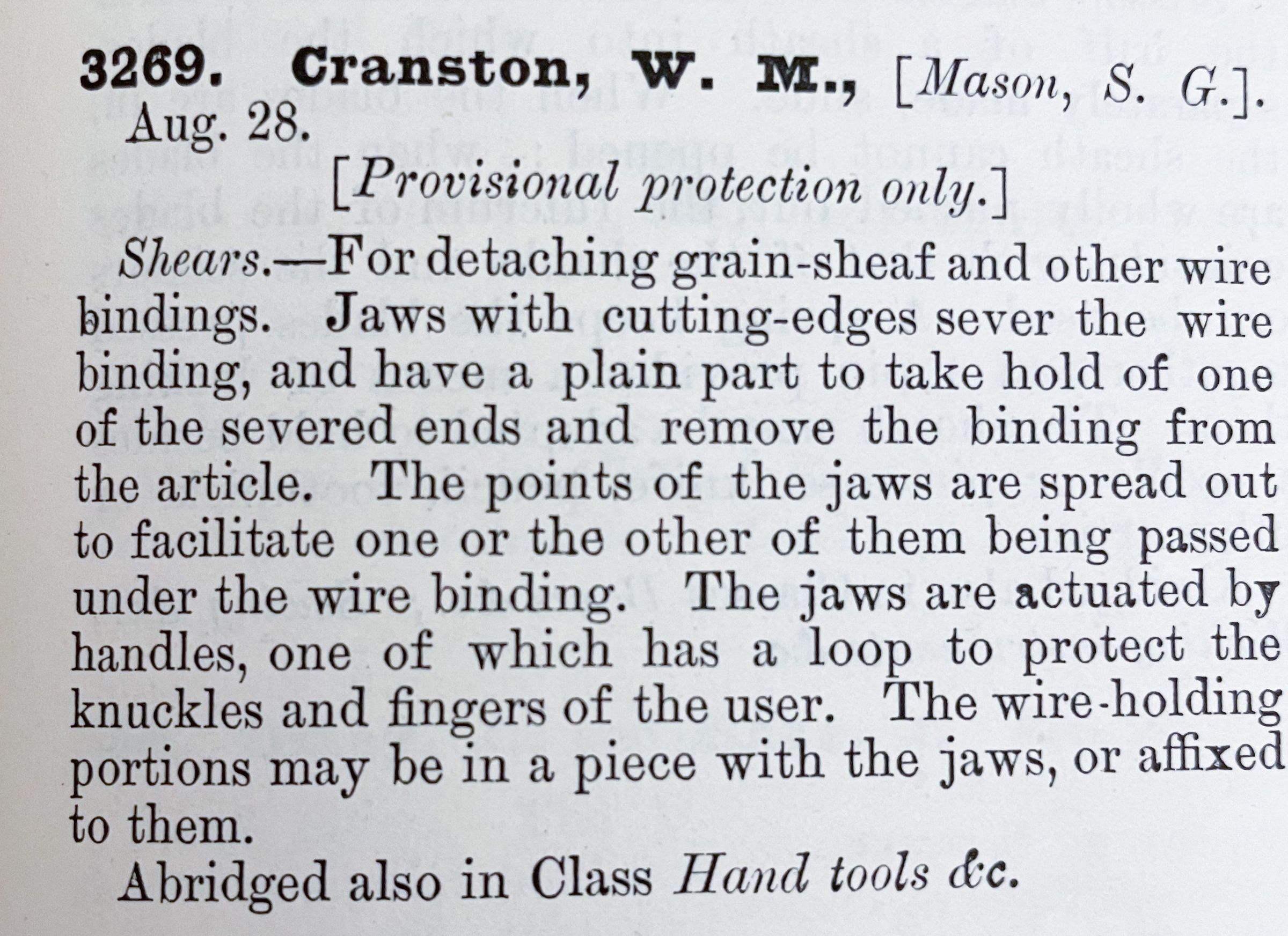 1800s, british, patent summary, shears, cranston, masonDescription
