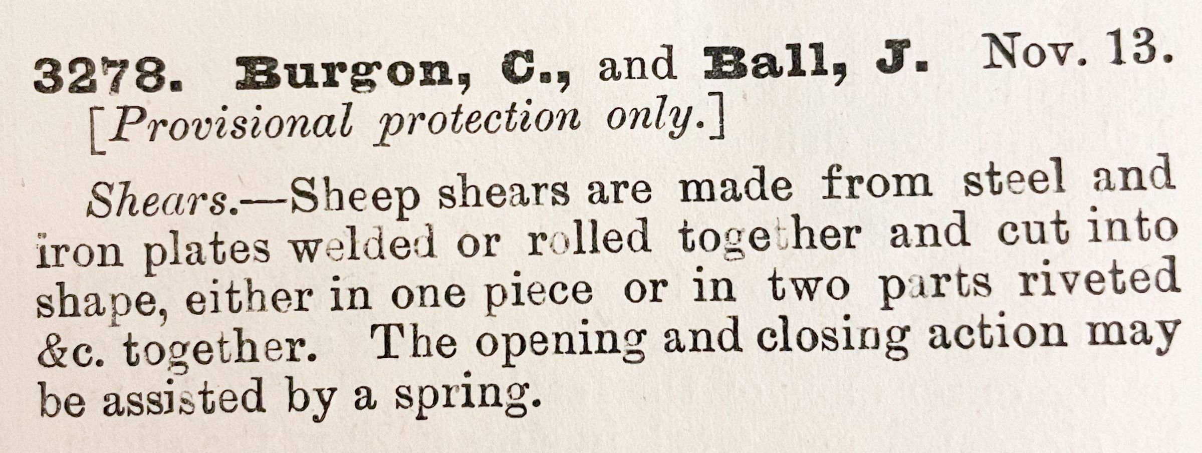 1800s, british, patent summary, shears, sheep, burgon, ballDescription
