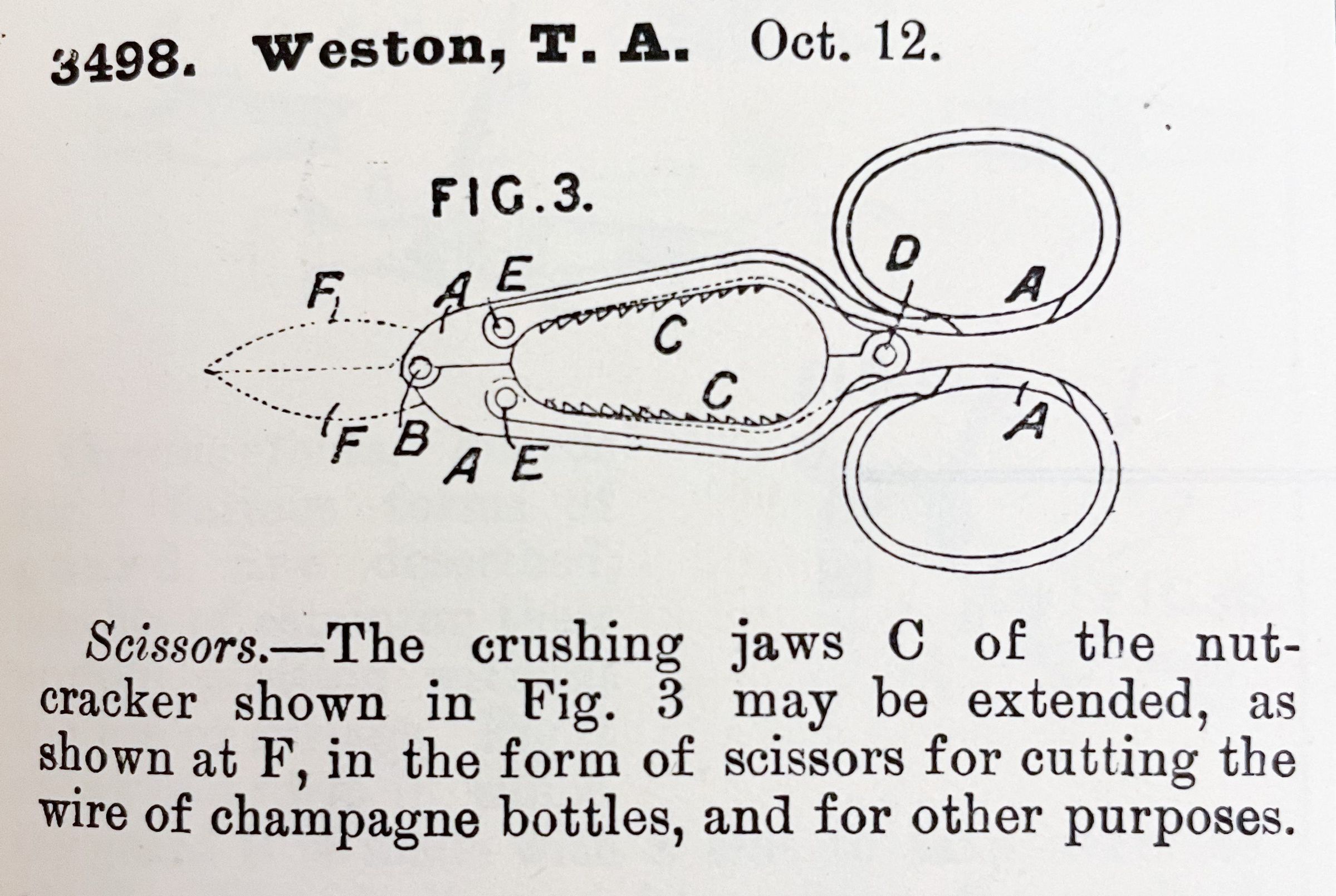 1800s, british, patent summary, scissors, nutcracker, wire cutter, westonDescription