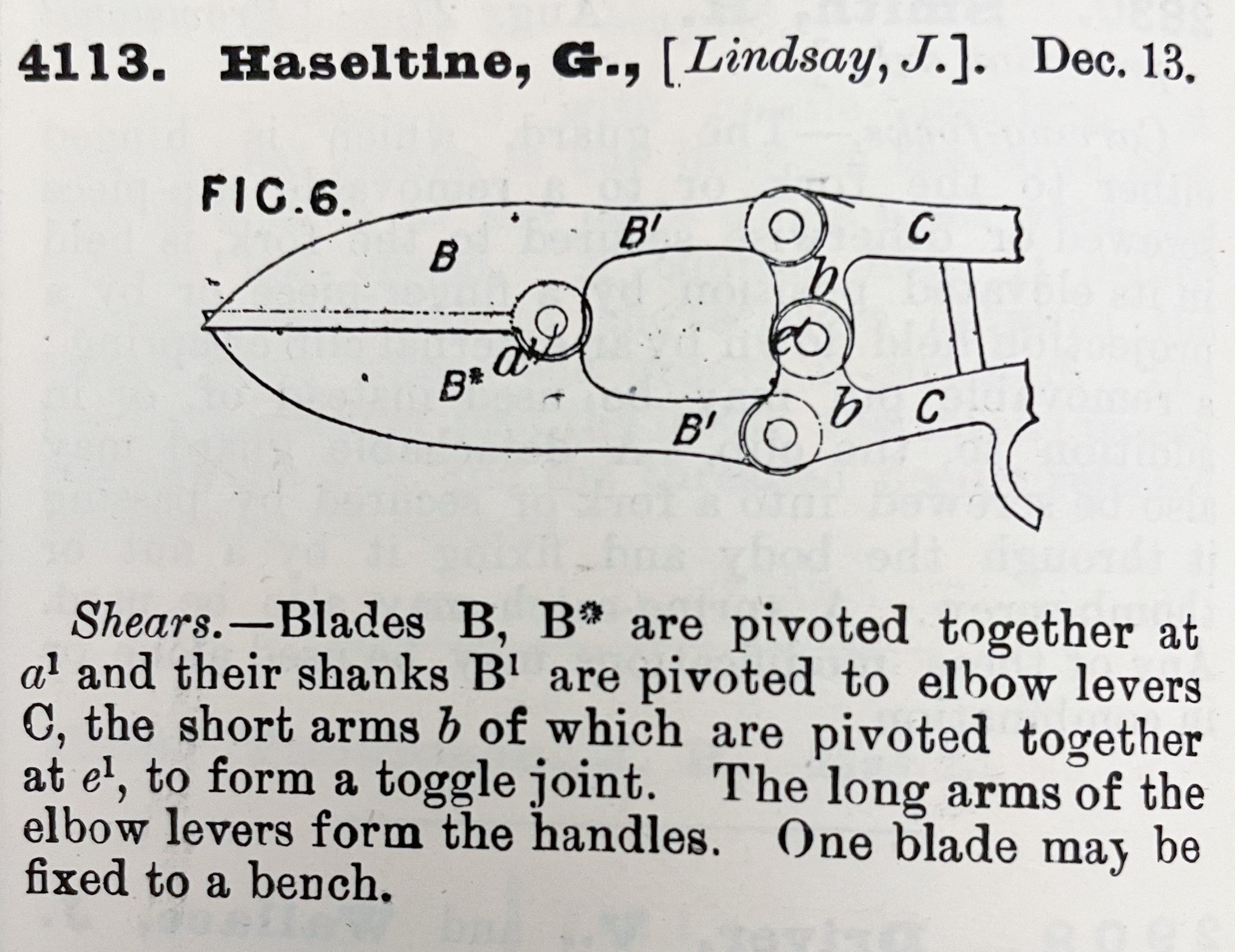 1800s, british, patent summary, shears, haseltine, lindsayDescription