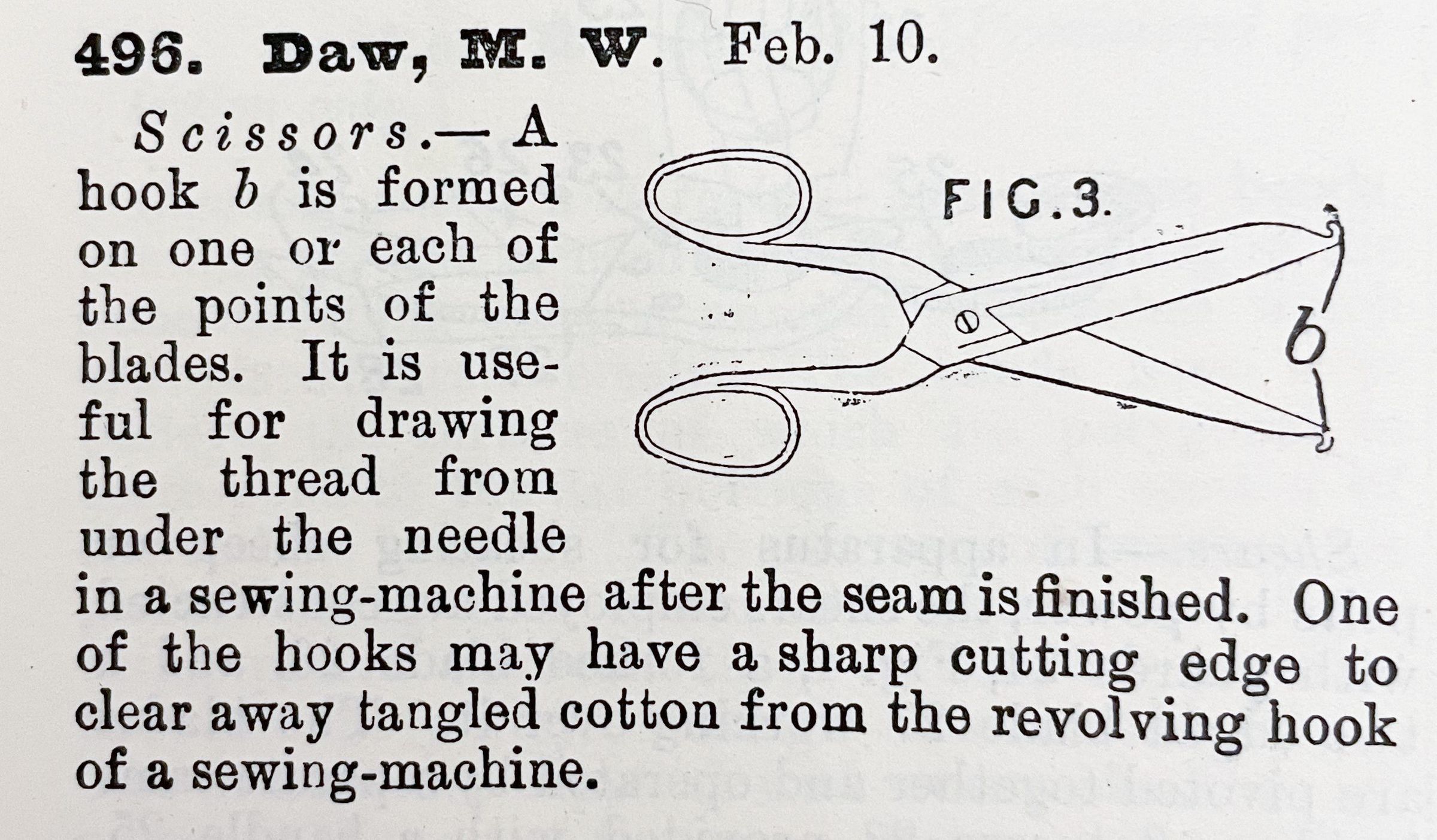 1800s, british, patent summary, scissors, sewing, dawDescription