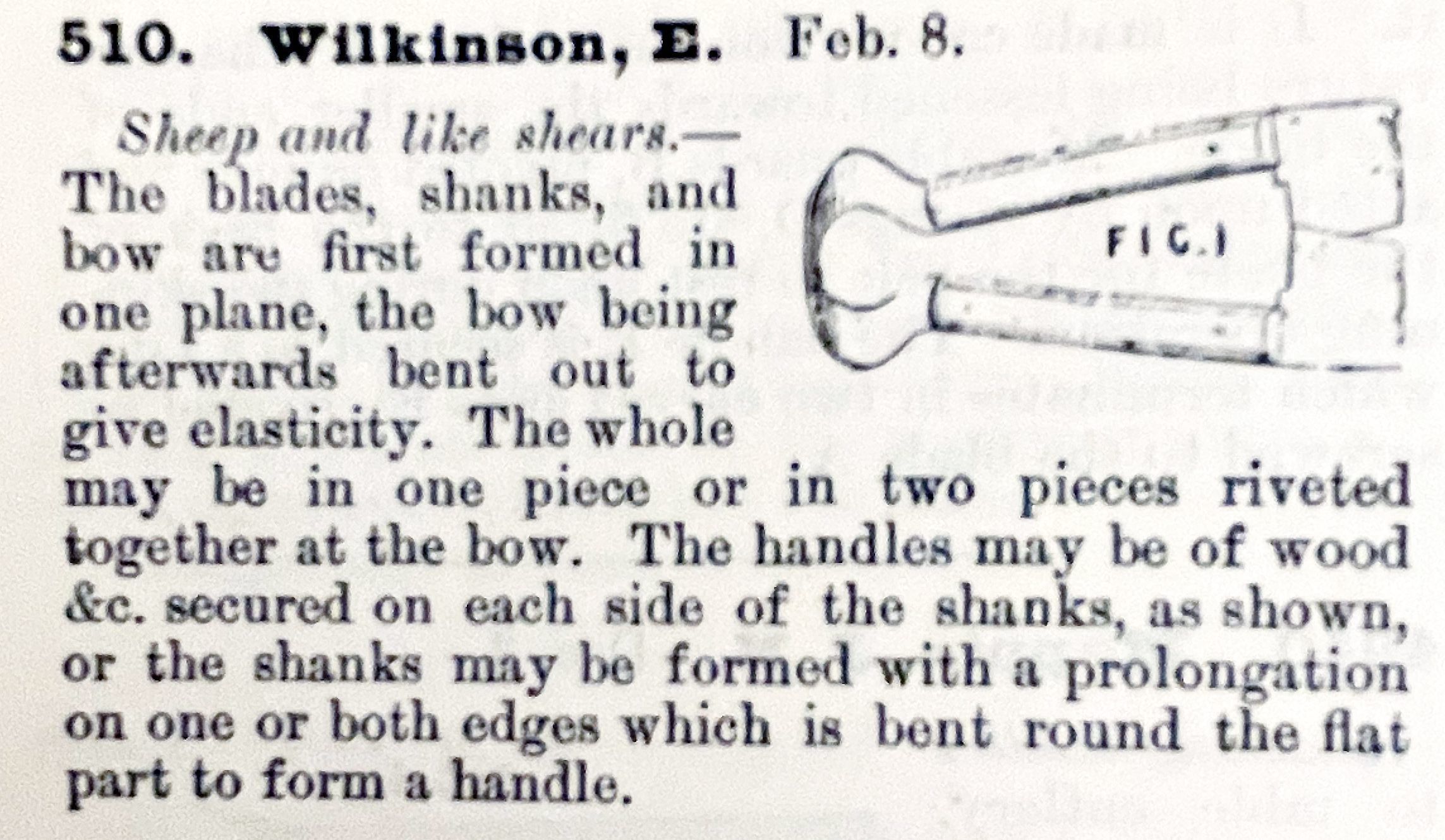1800s, british, patent summary, shears, sheep, wilkinsonDescription