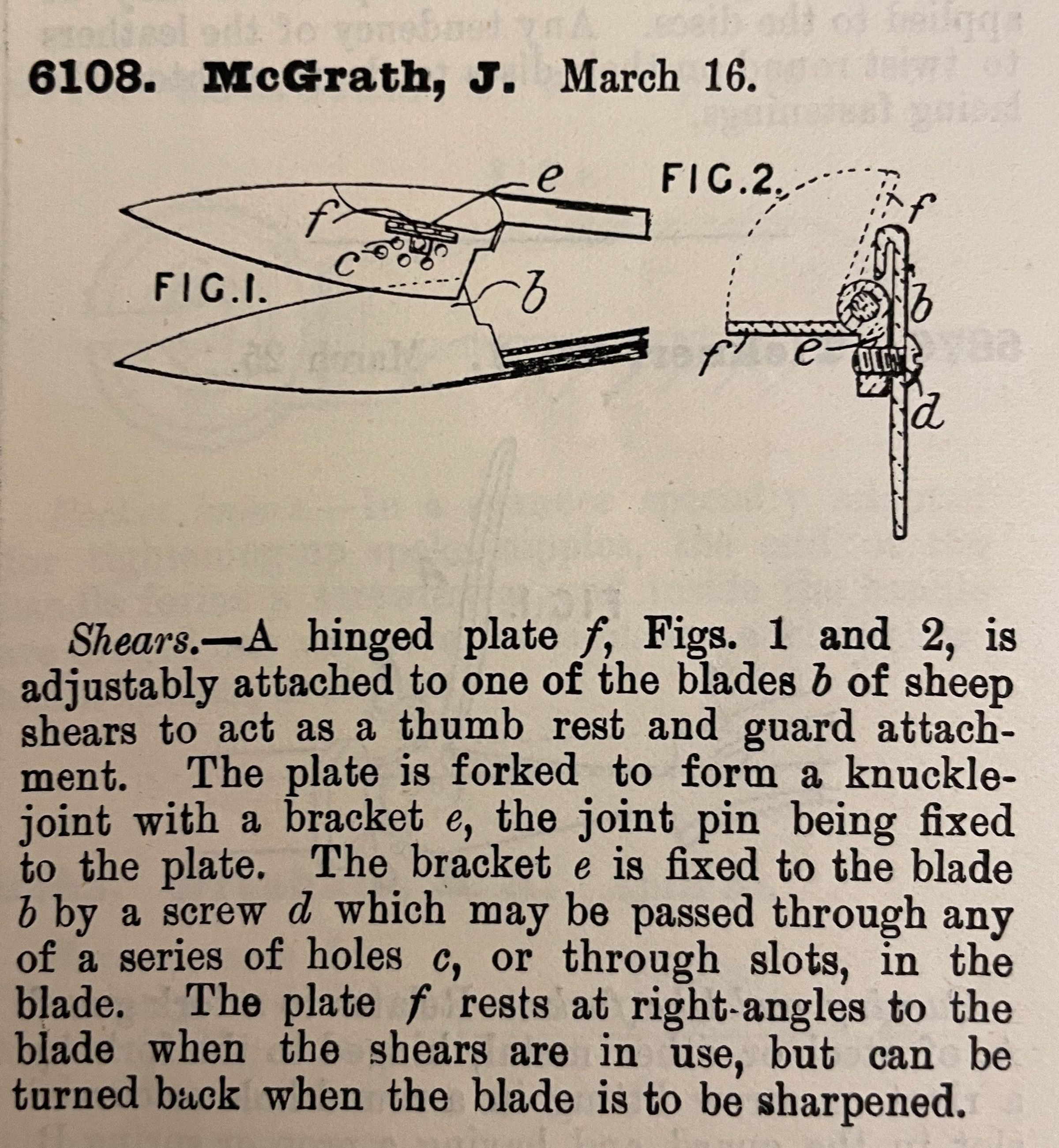 1900s, british, patent summary, shears, sheep, mcgrathDescription