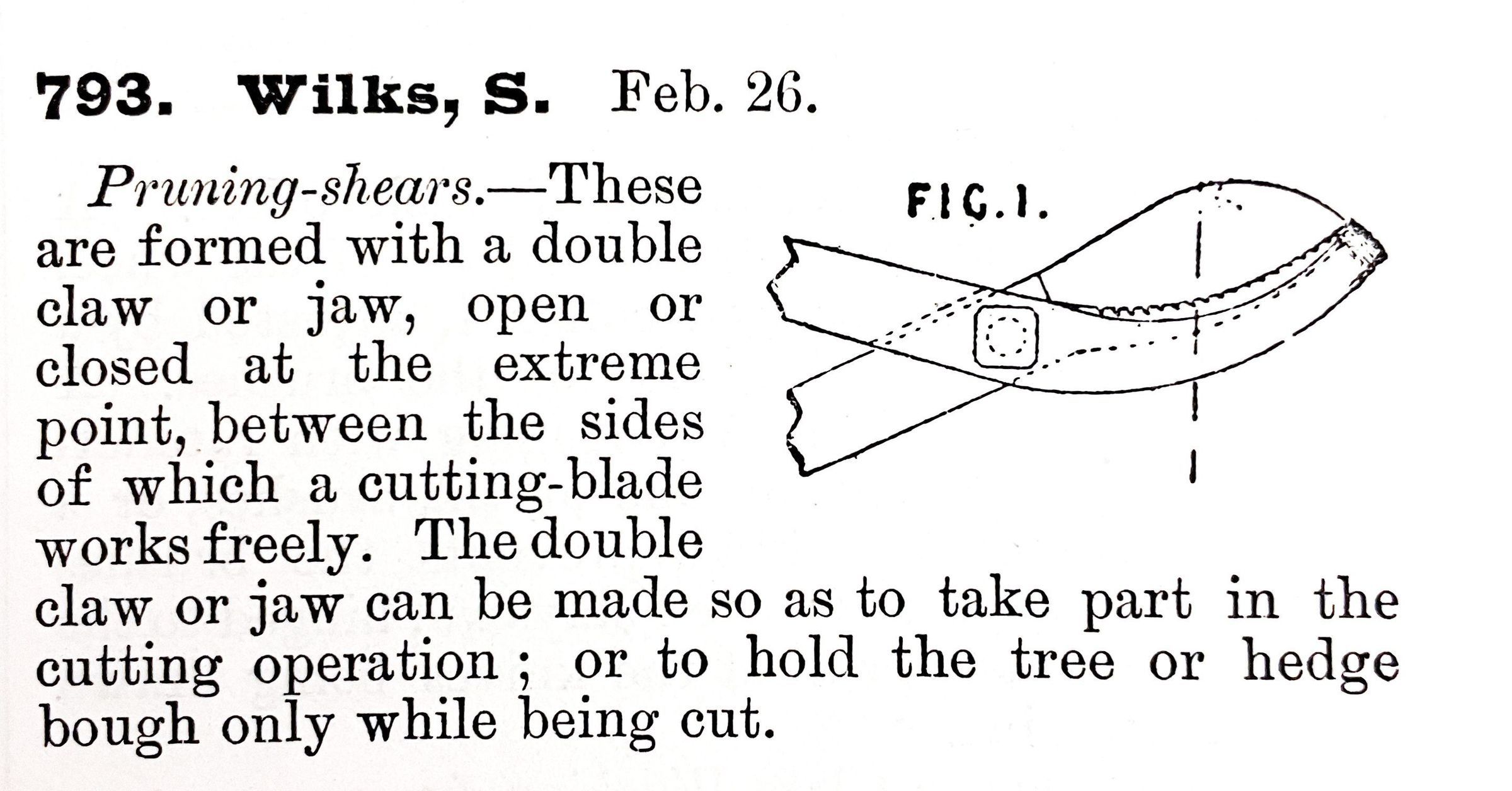 1800s, british, patent summary, pruning, shears, wilksDescription