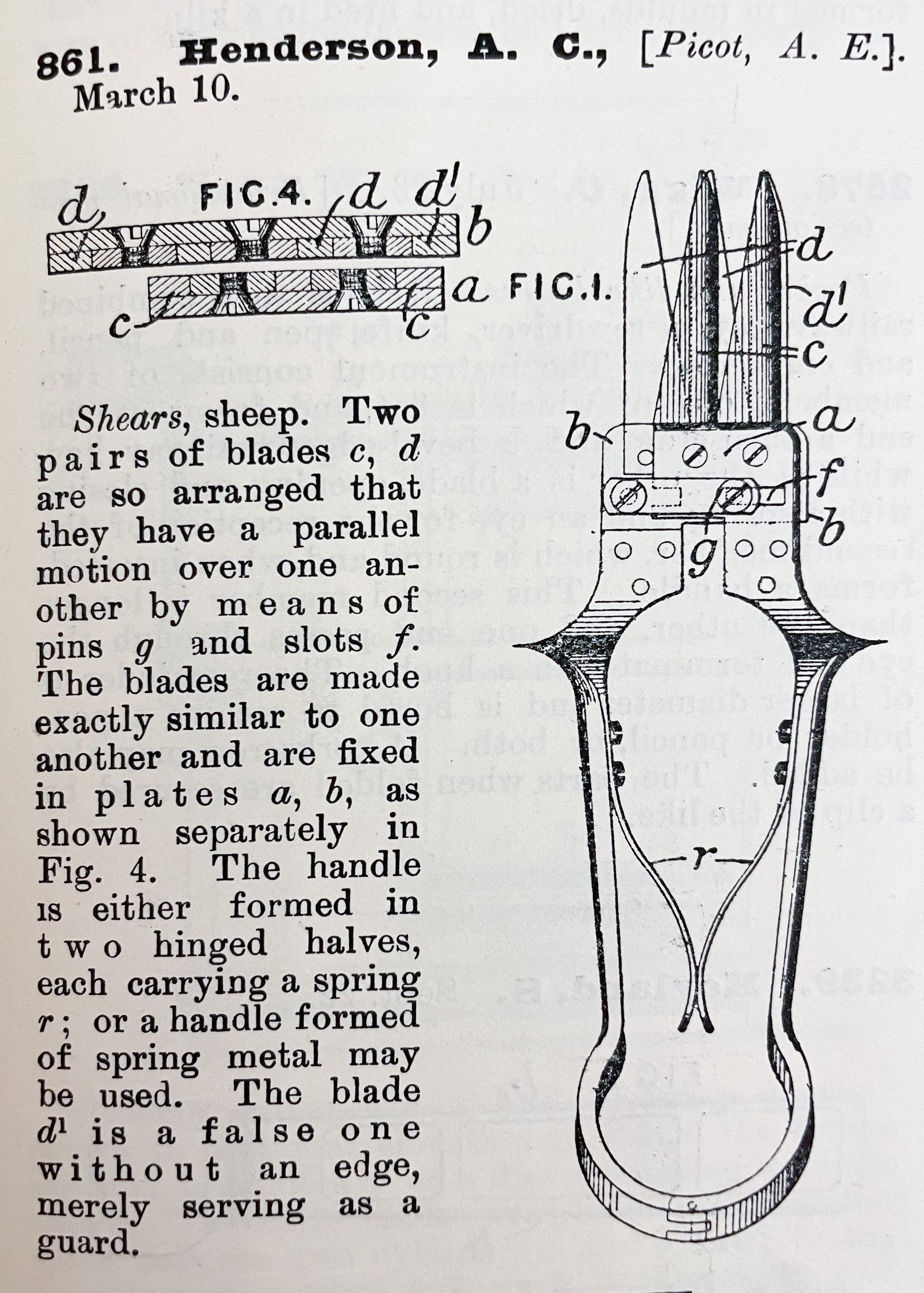 1800s, british, patent summary, shears, sheep, hendersonDescription