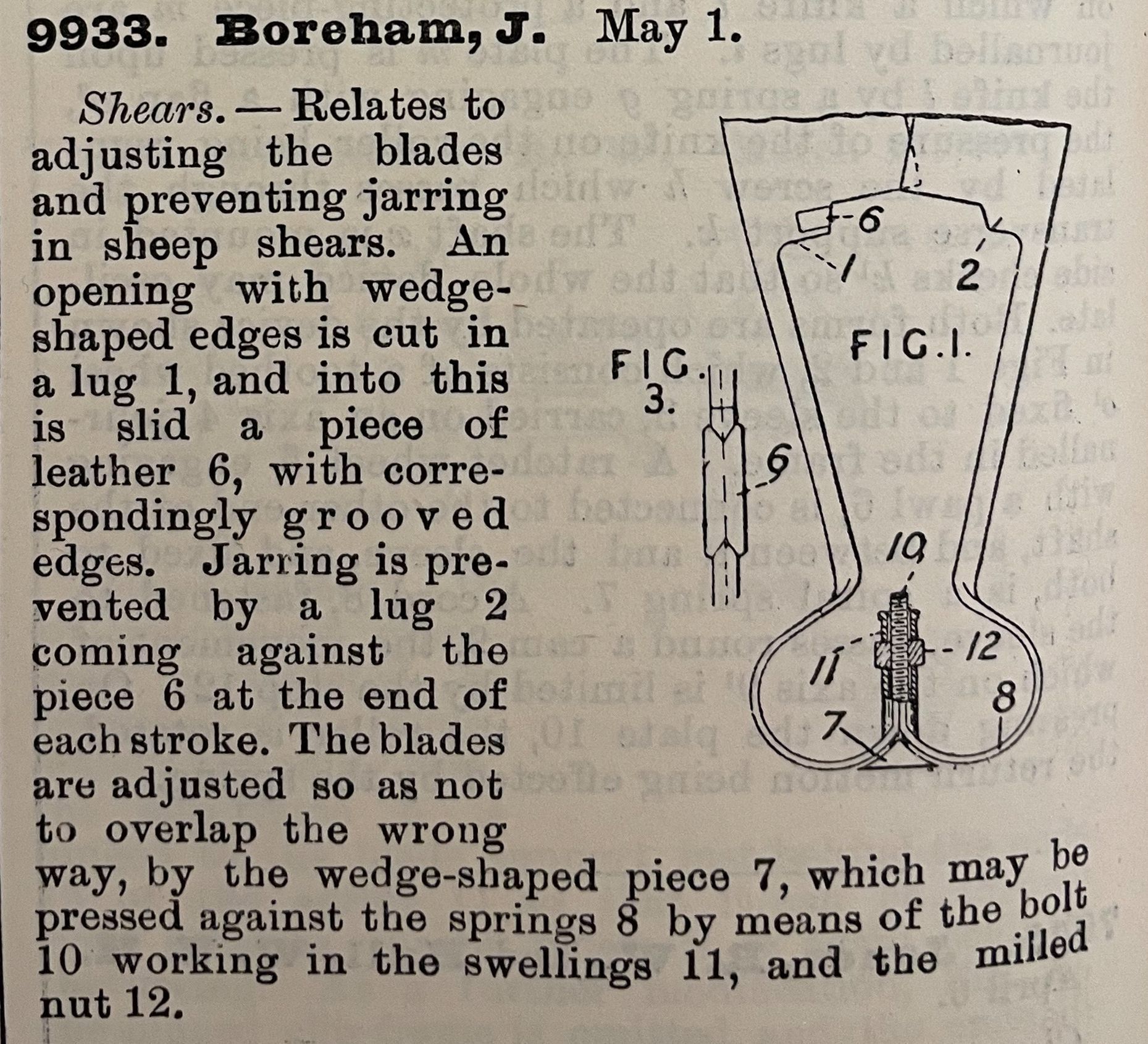 1900s, british, patent summary, shears, sheep, borehamDescription