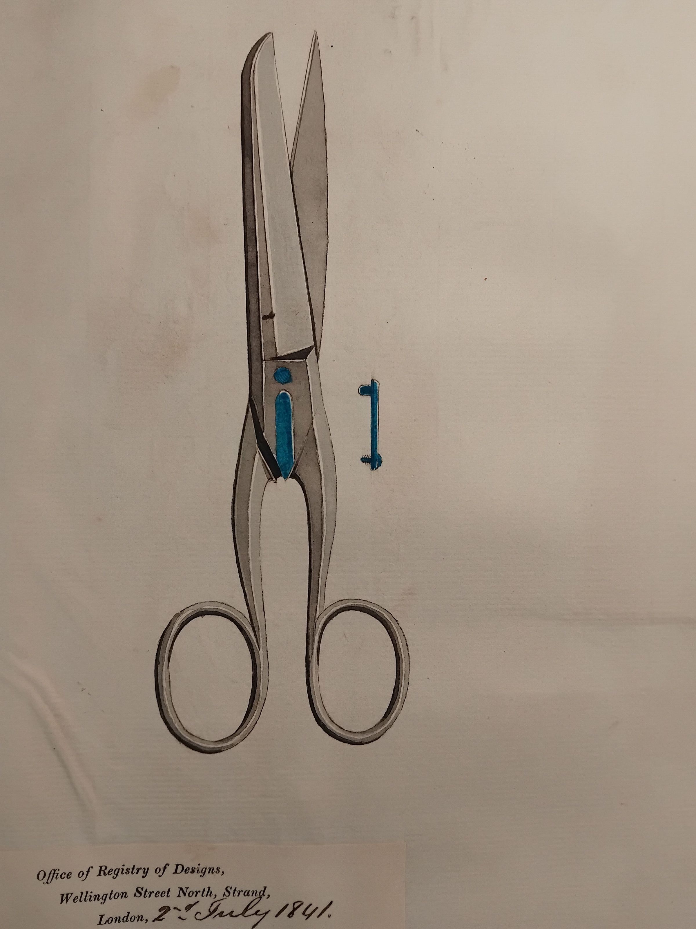 Registered design for a new scissor spring from 1841.