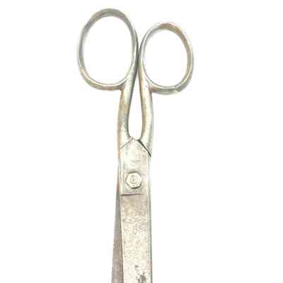 Large carpet scissors with unequal bows and asymmetrical point. One blade has a square point. Shoulder type is st1, cross section is cs4. Shank type is tup. Made in Sheffield, also marked with "Pirelli Ltd" so likely manufactured for them by a Sheffield firm as a promotional gift.Category
