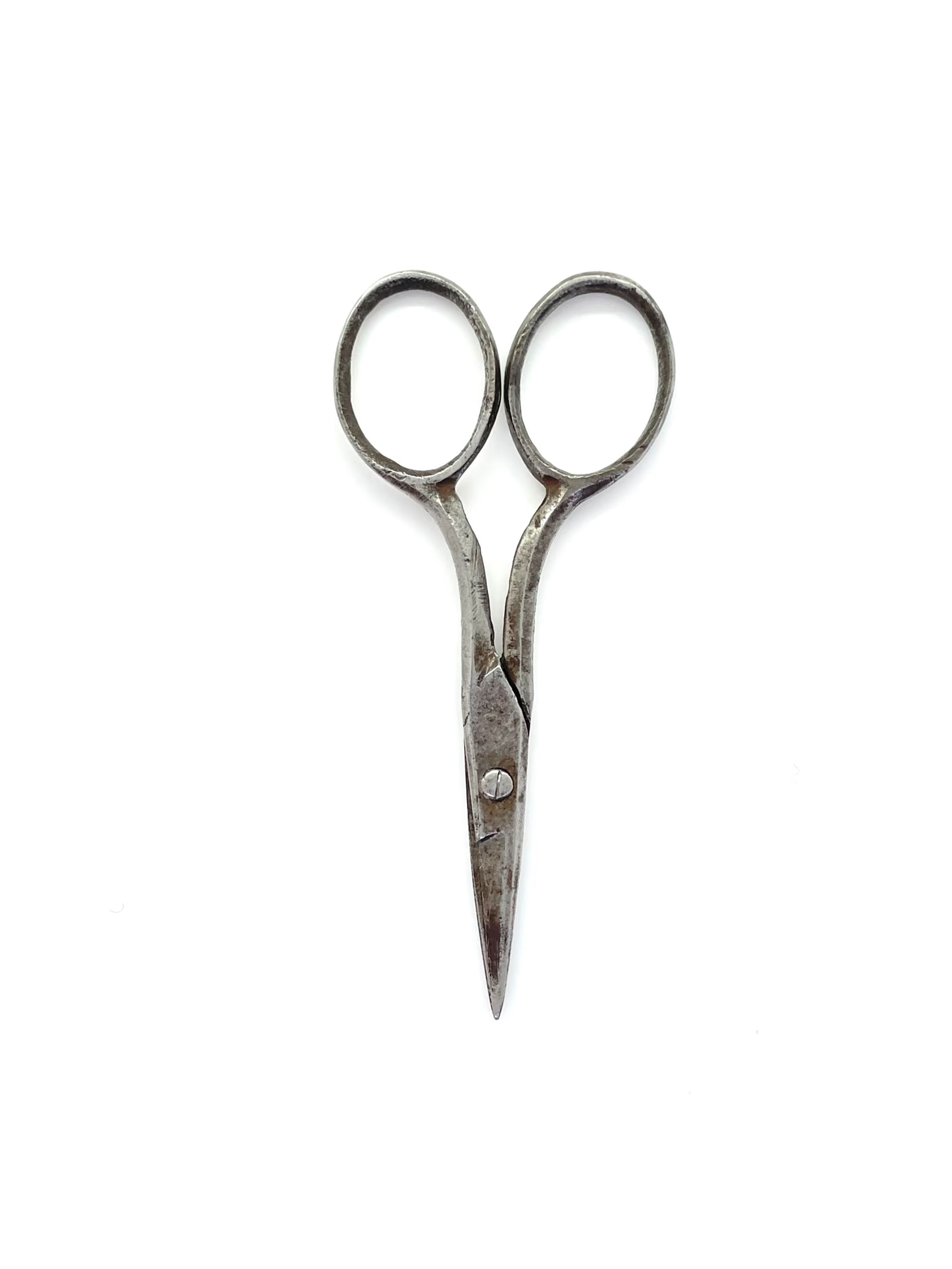 A small pair of unmarked scissors with reverse shanks. Pivot is a screw, point is bodkin; shoulder is st3 and cross section is cs8. Far East origin.Dimensions