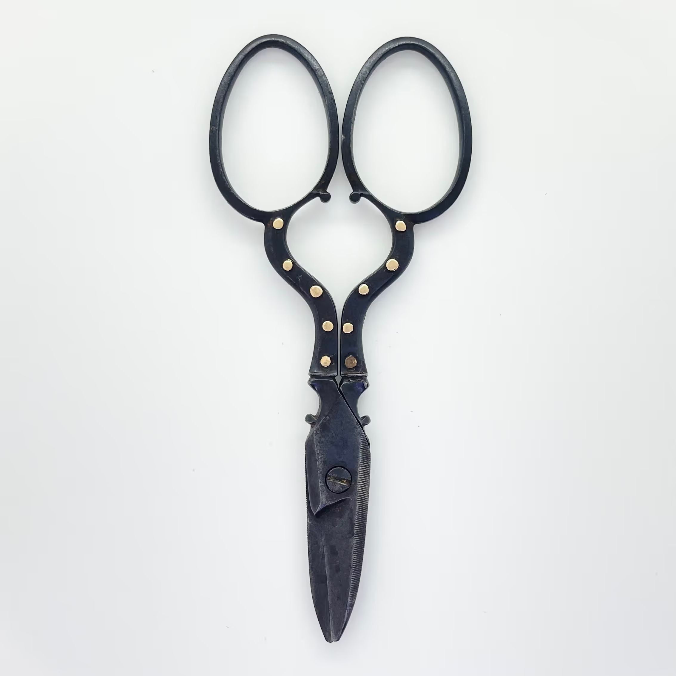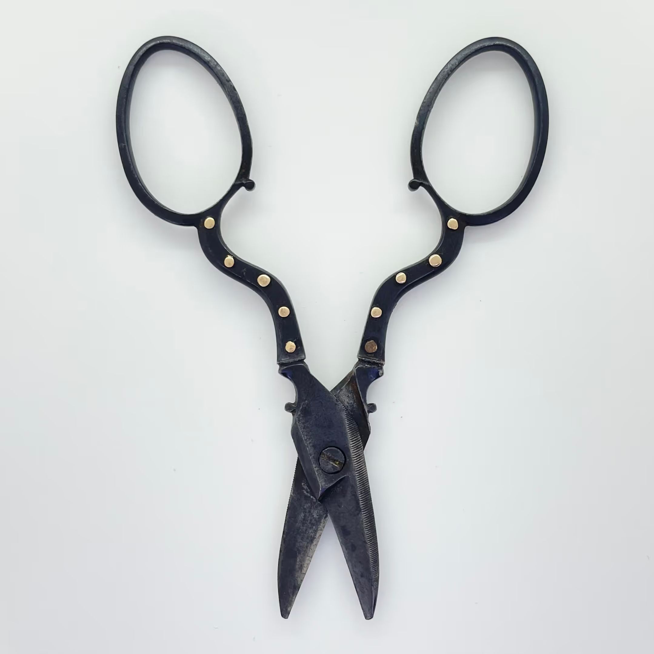A pair of manicure scissors with a nail file on the outer side of each blade. The shanks are Spanish in style and studded. Shoulder transition is st3, cross section is cs4.