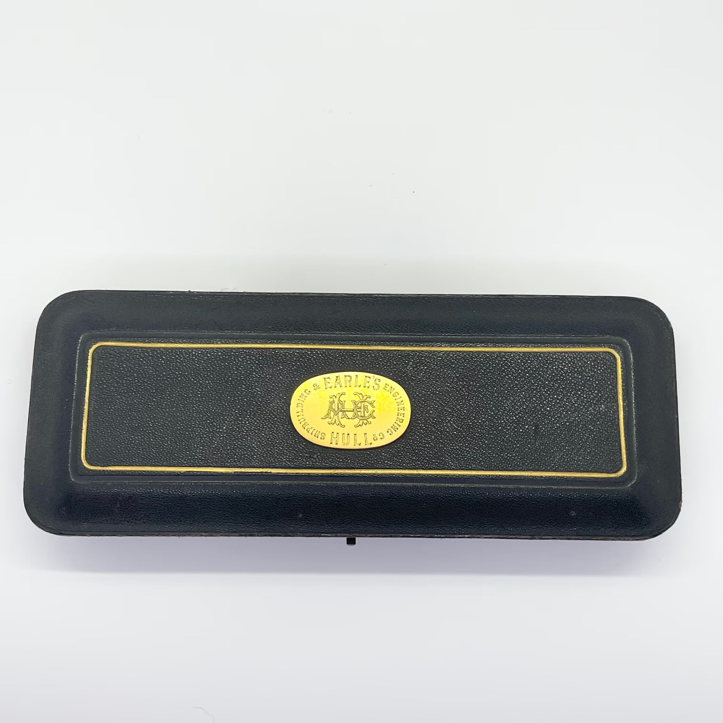 The pivot area is marked J. RODGERS & SONS with the star and maltese cross design that was their trademark. The inscription on the blade reads 'Launched Jany. 10th 1894 S.S. Berlin'. The top of the case has a metal plaque that reads EARLE'S SHIPBUILDING & ENGINEERING CO HULL; and the inside of the case is marked JOSEPH RODERS & SONS 6, NORFOLK ST. SHEFFIELD CUTLERS TO HER MAJESTY, with the star and maltese cross design, followed by CORPORATE MARK.Made/Created