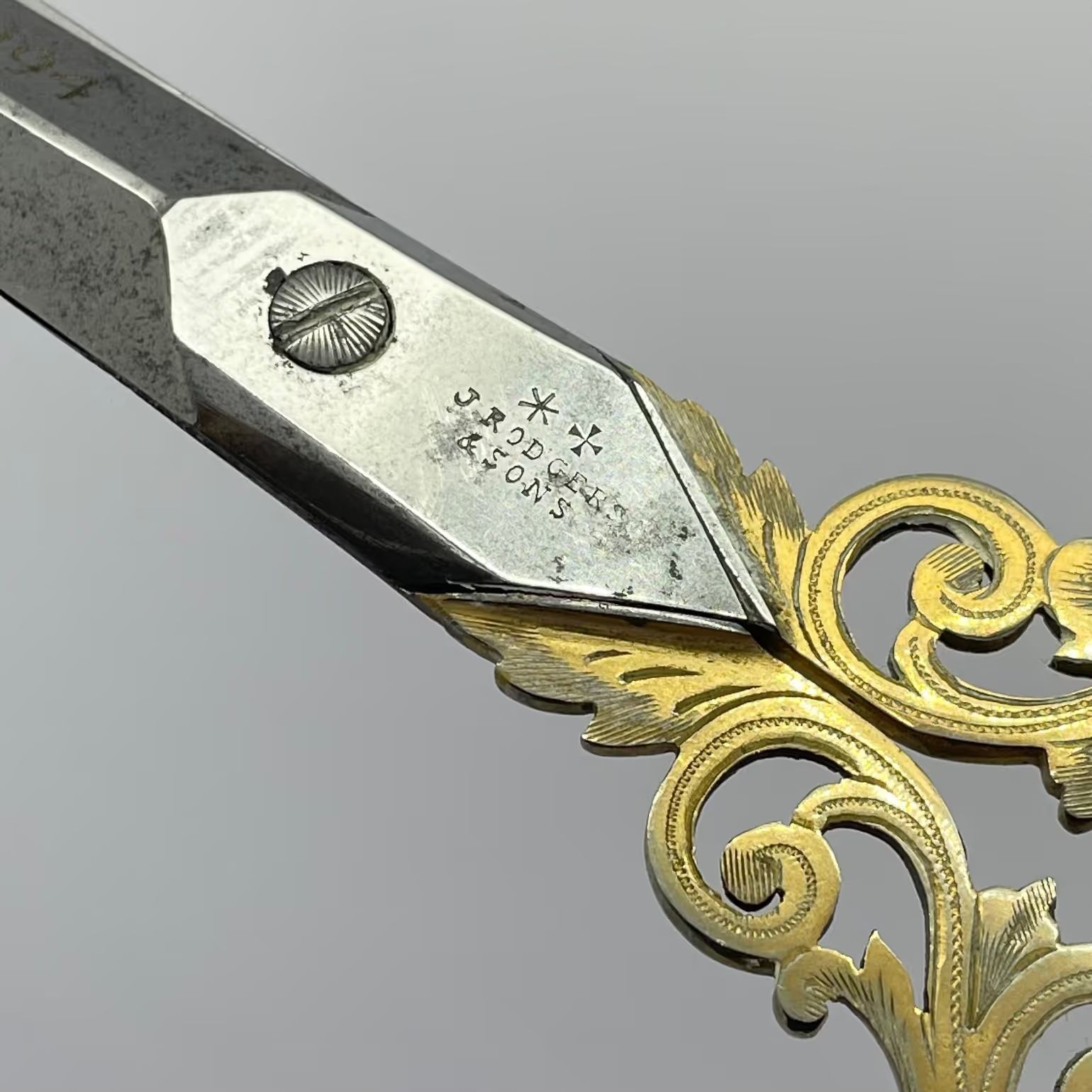 scissors, commemorative, 1800s, sheffield, st8, cs1, asymmetrical point, caseDescription
