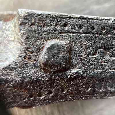 Wrought iron with forge welded steel cutting face.