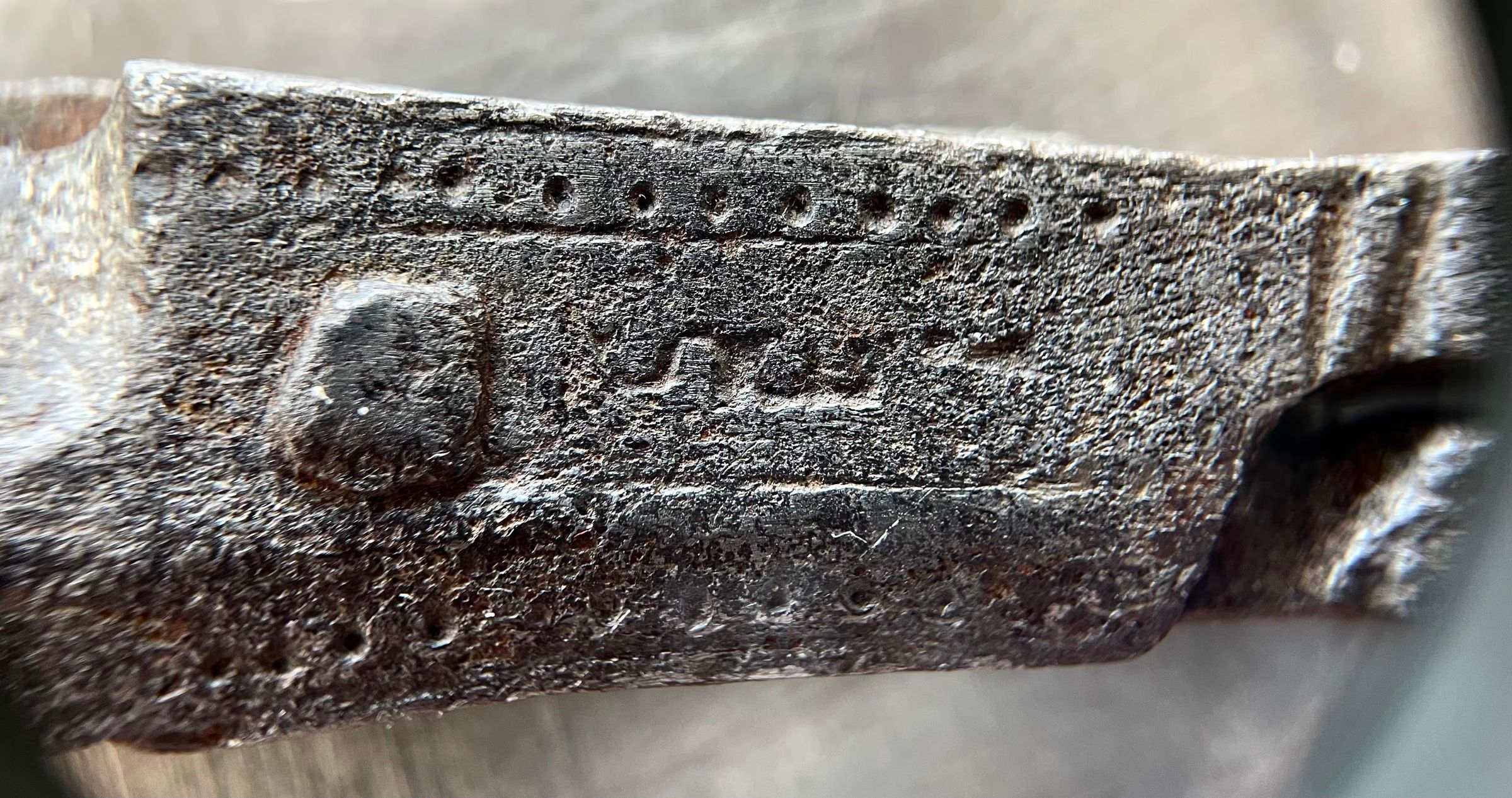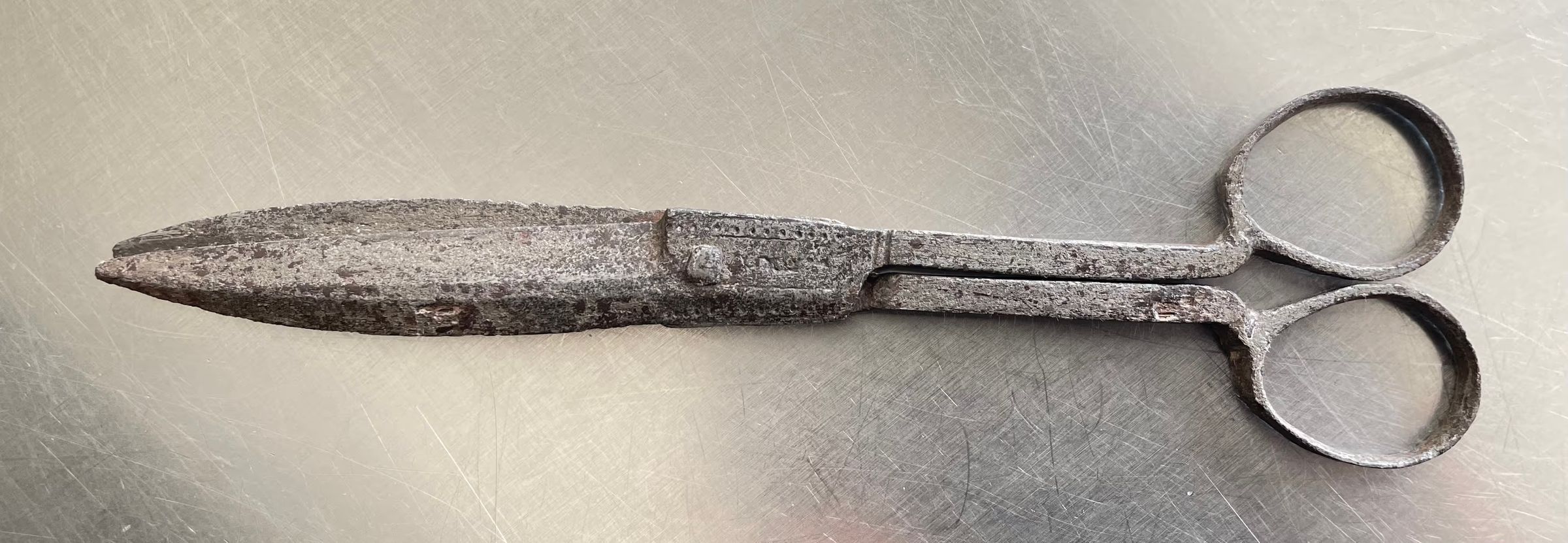 1700s, iron, scissors, archaeology, cs8, st1, leaf, nailDescription