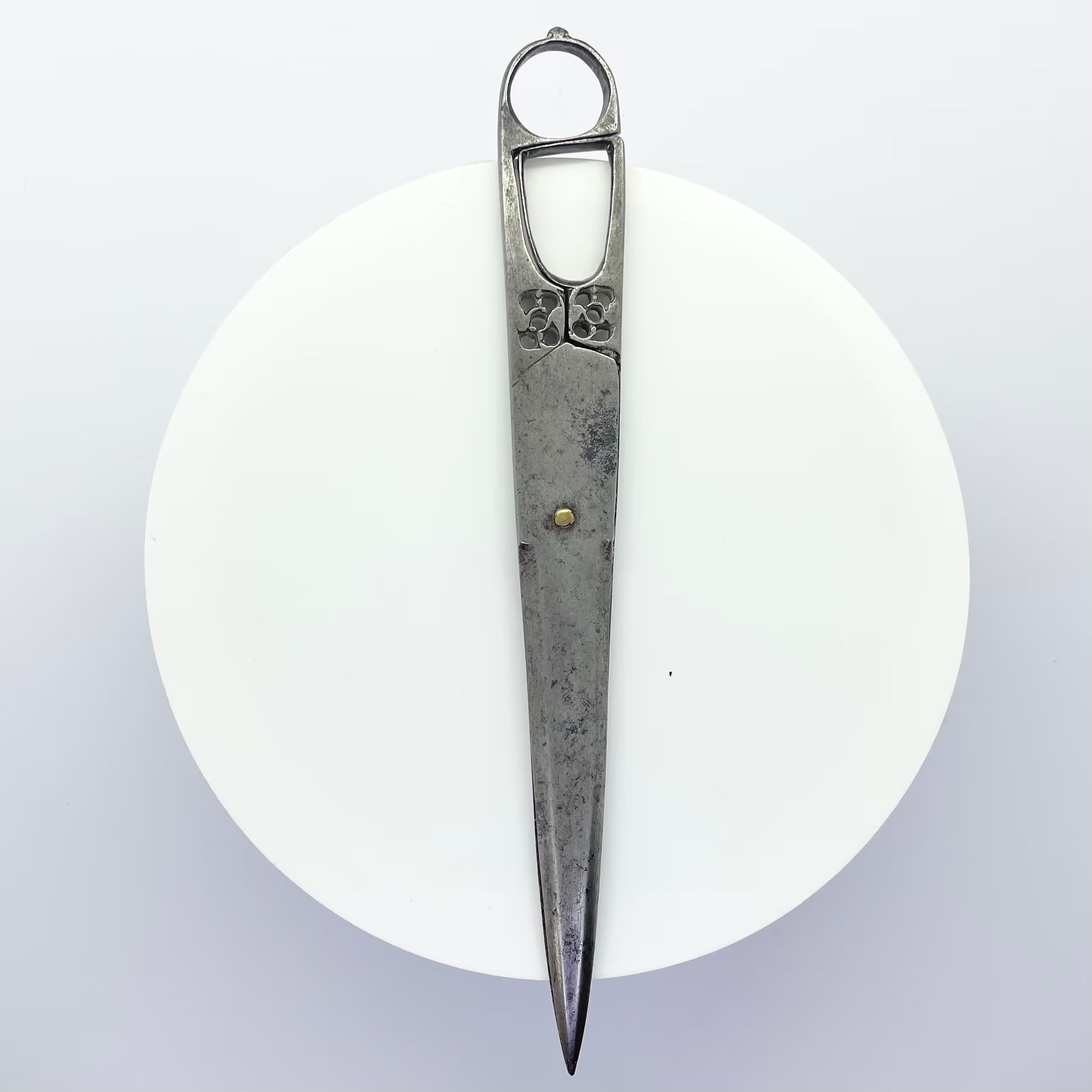 scissors, calligraphy, bodkin blade, clamshell grind, nested bows, asia, openwork, cs3Description