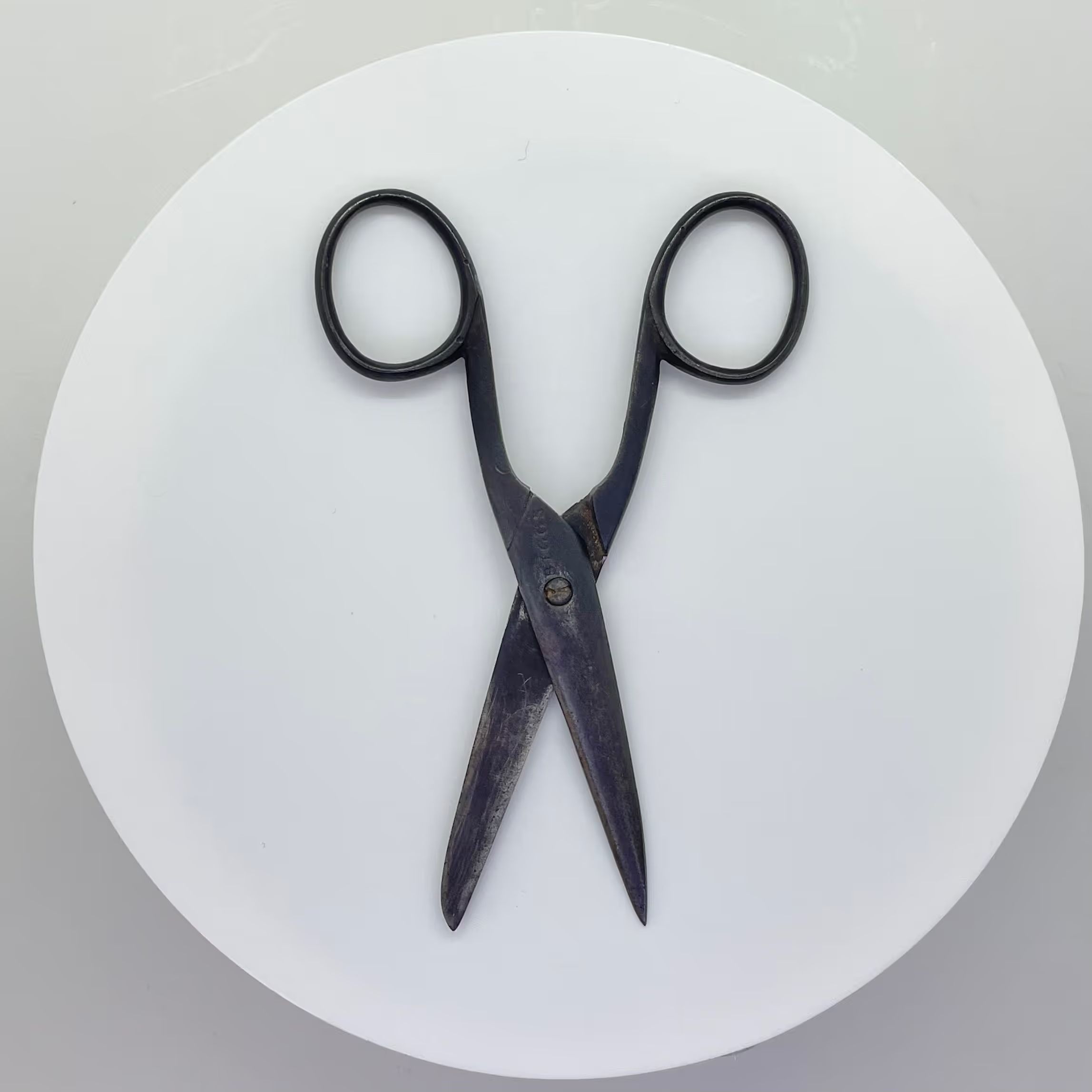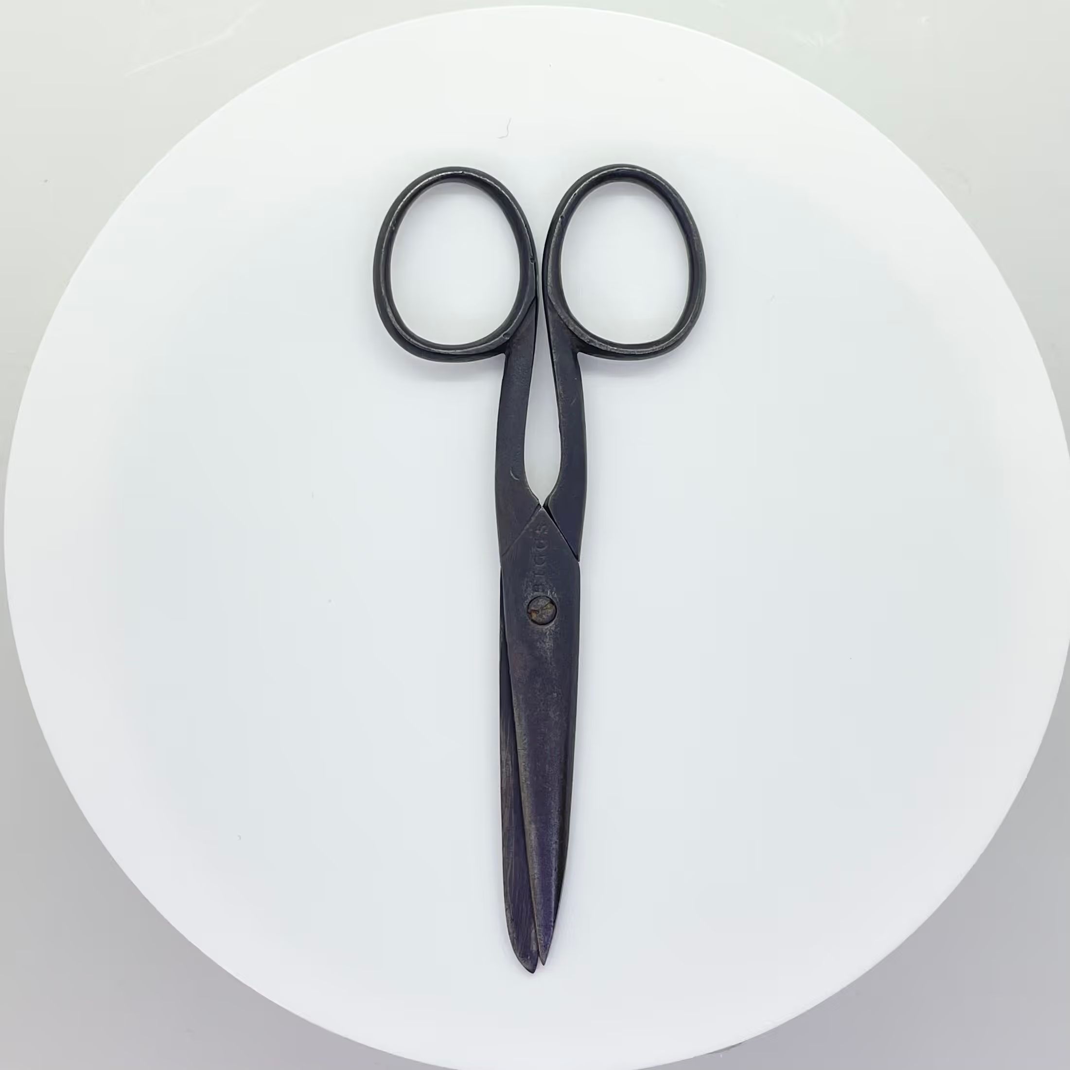 A pair of scissors with a tup shank and asymmetrical point. There is no shoulder transition, cross section is cs2.Inscription/Signature/Marks