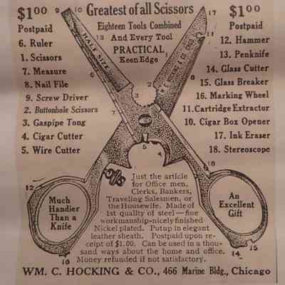 The advert is listed elsewhere as being from a magazine in 1907, potentially dating the scissors to the early part of the 20th century.Inscription/Signature/Marks
