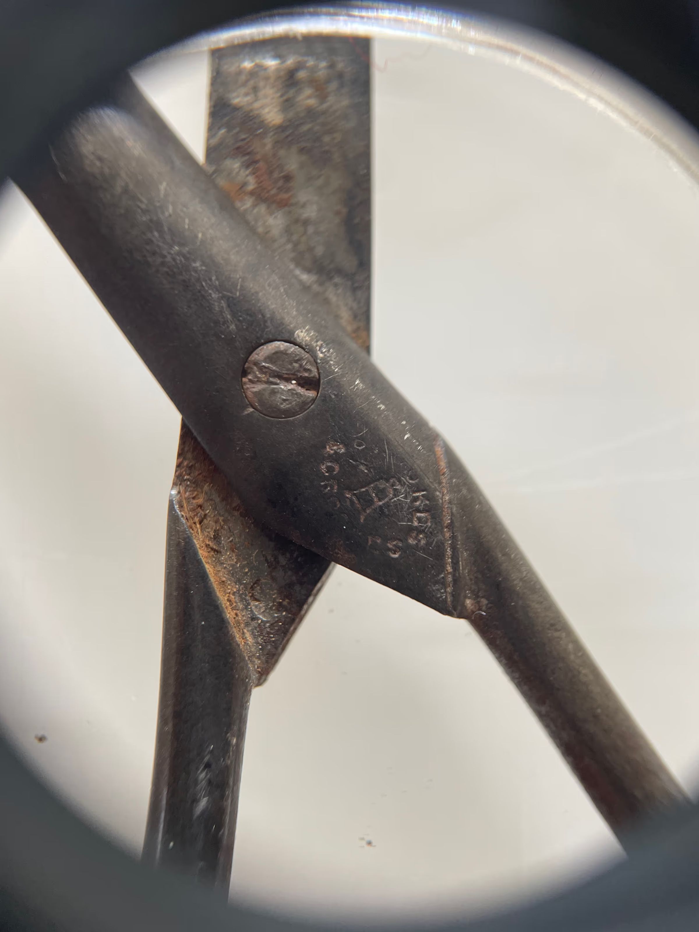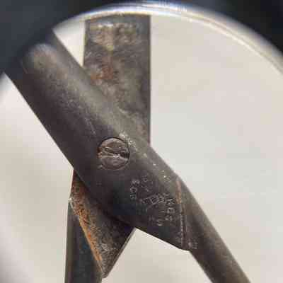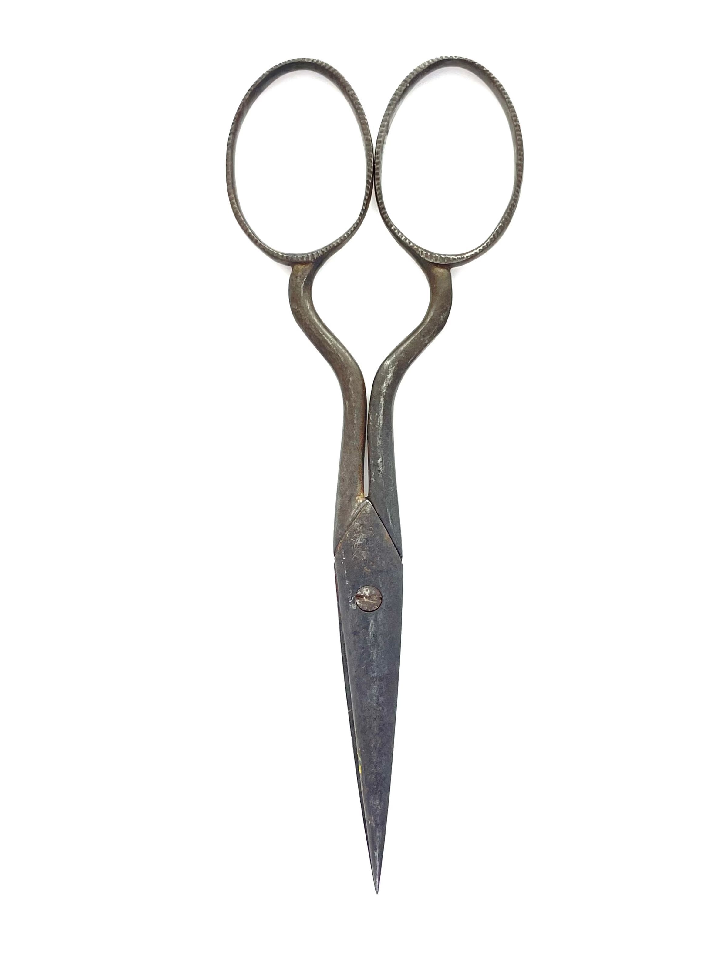 A delicate pair of scissors with Spanish style shank and a bodkin blade. Cross section is cs2 and there is no shoulder transition. Marked above the pivot "BROOKES & CROOKES" with the bell design that was their trademark.Made/Created