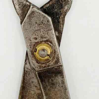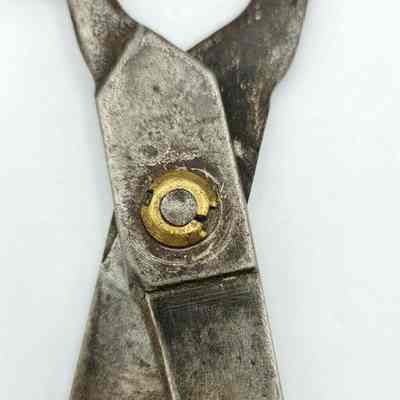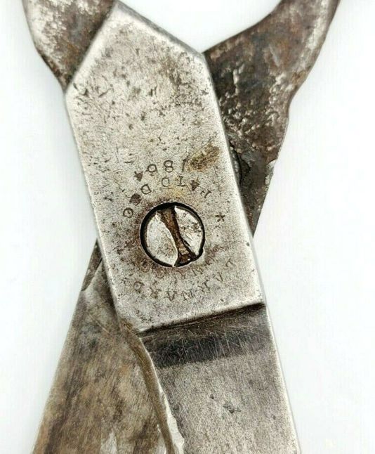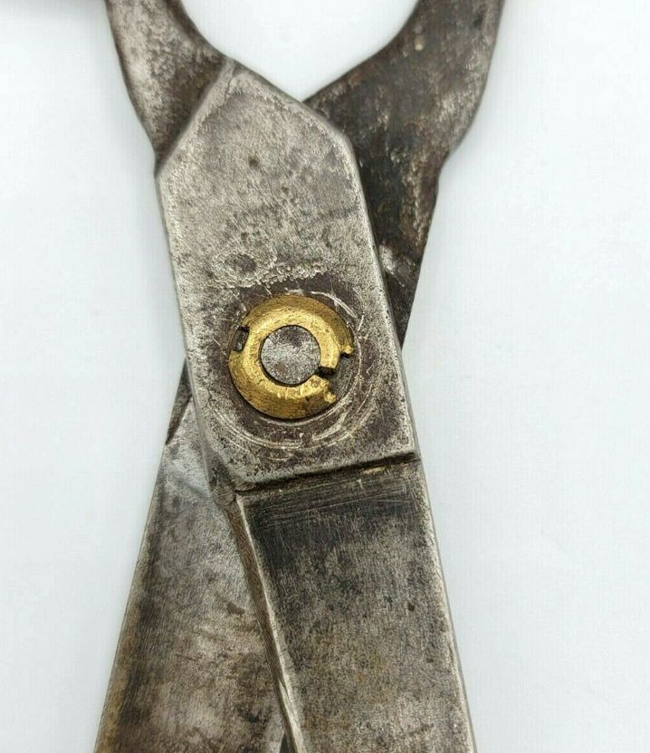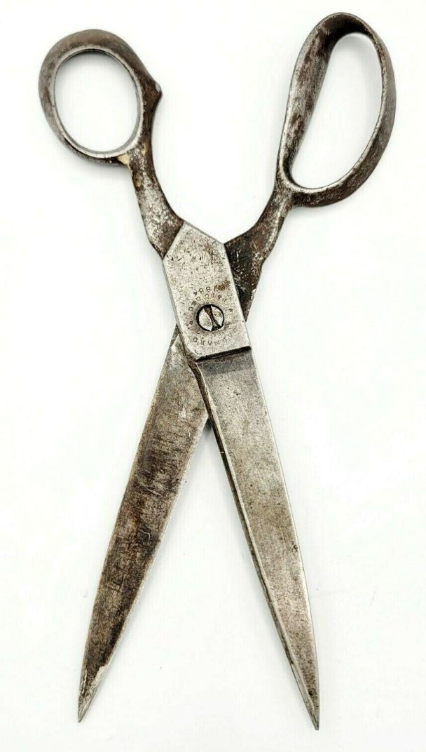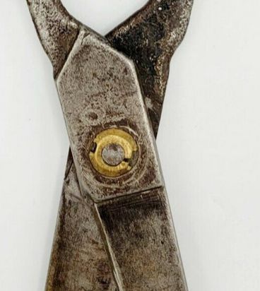 A pair of American cloth scissors with japanned handles, a screw pivot type, and pointed point type.Cataloged By
