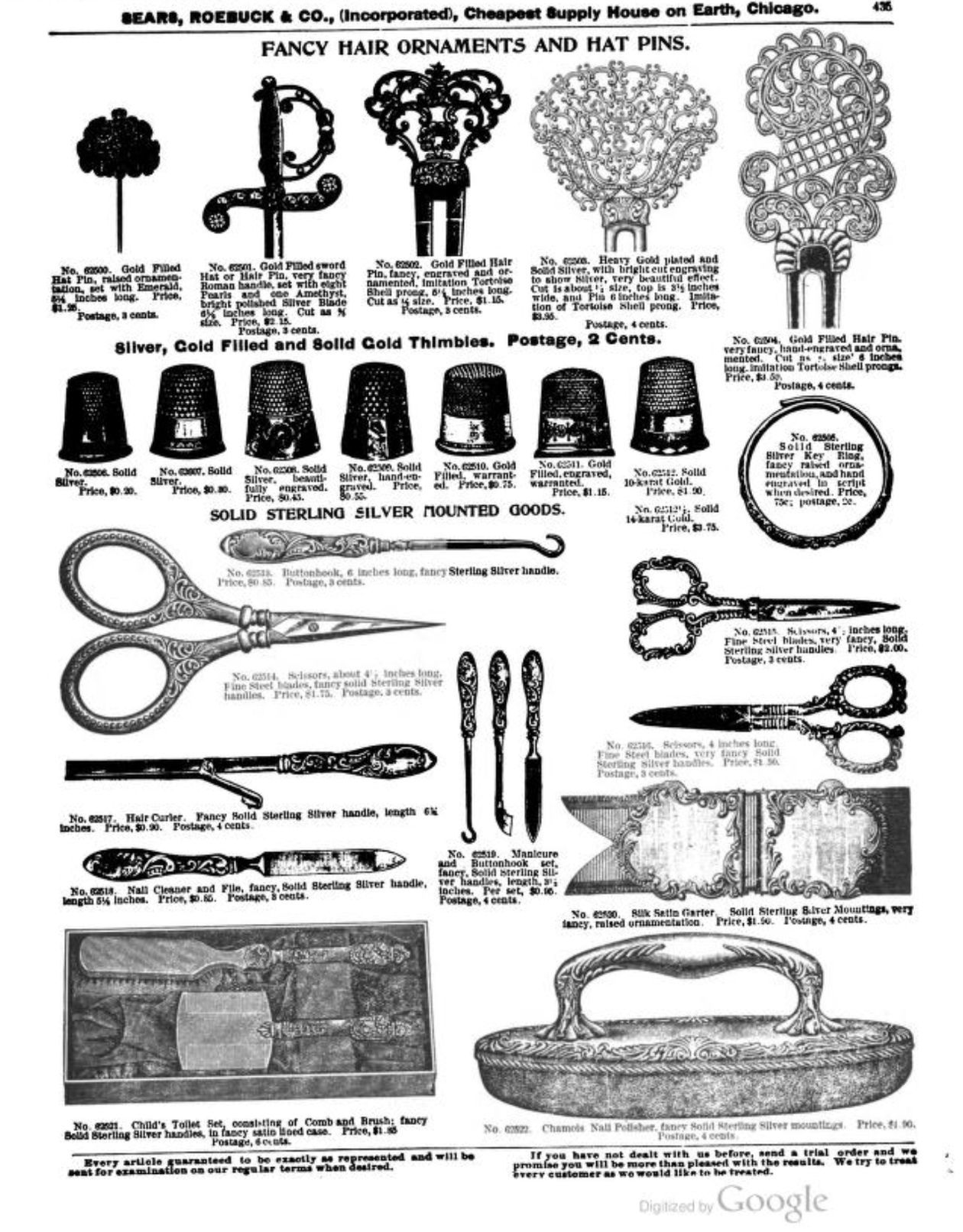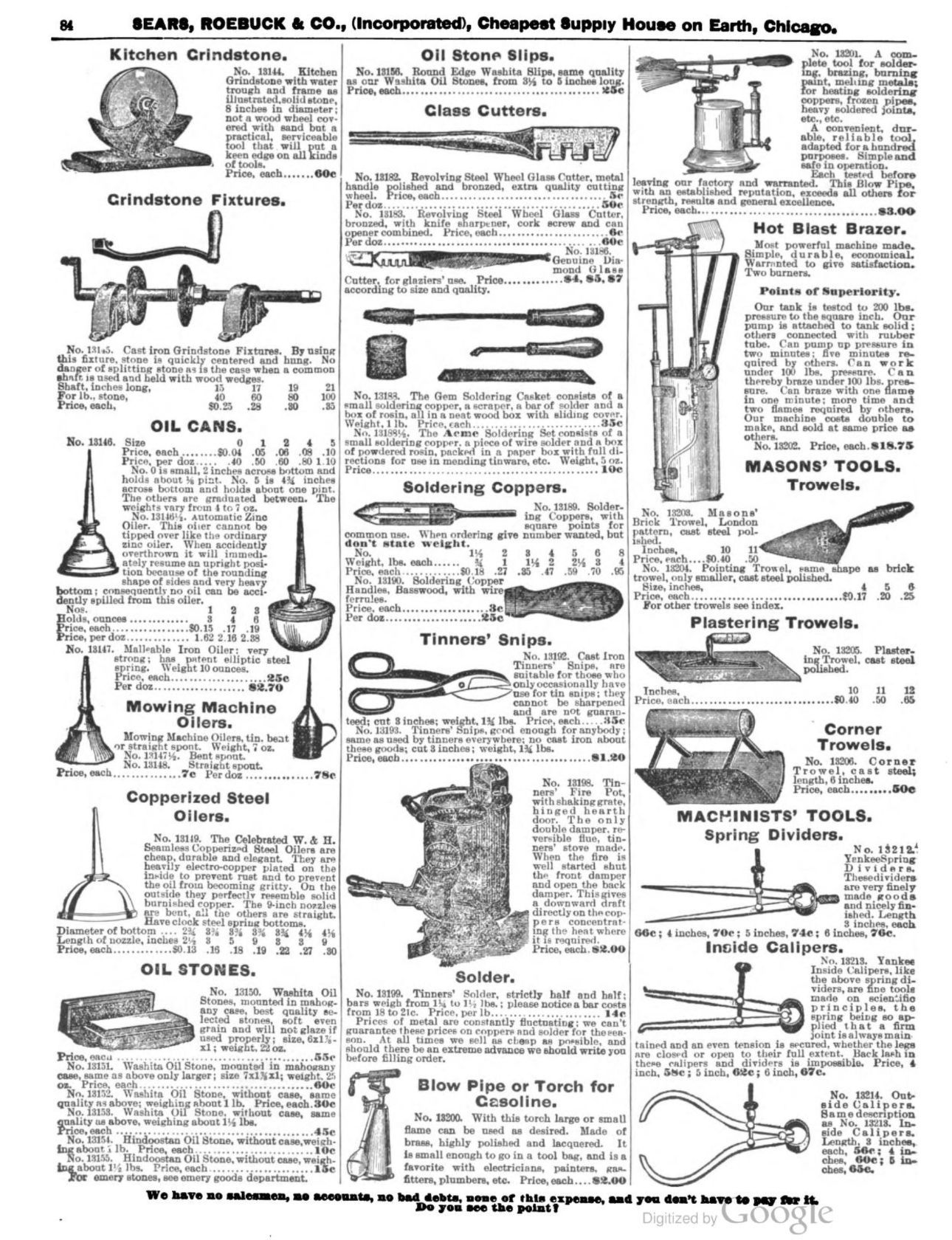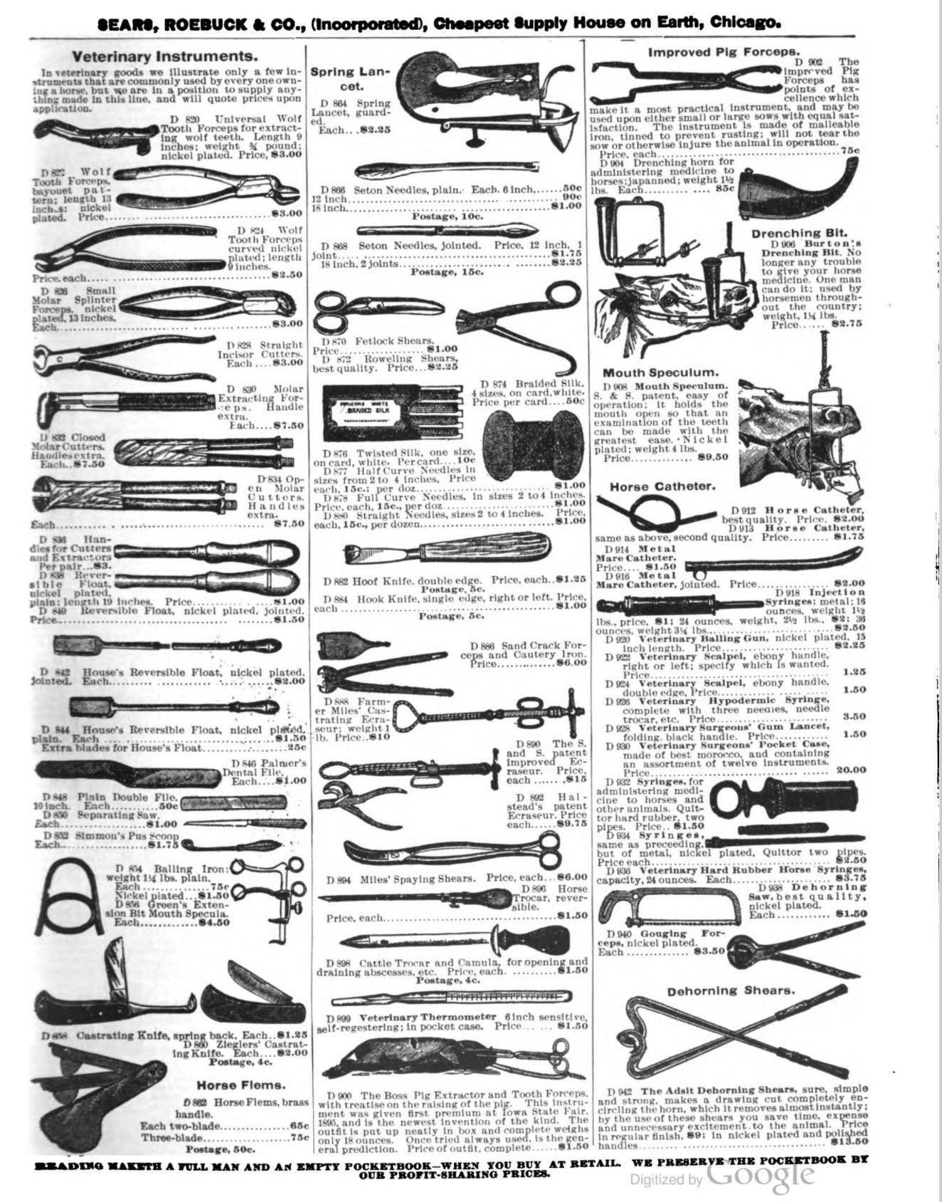 Sears, Roebuck & Co. were a mail order company who expanded to having department stores. At the time of this catalogue (Spring 1897) they had one store in Chicago. This catalogue illustrates a range of scissors, shears, and snips, including: