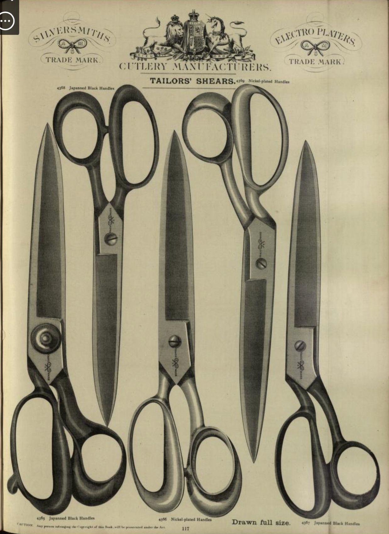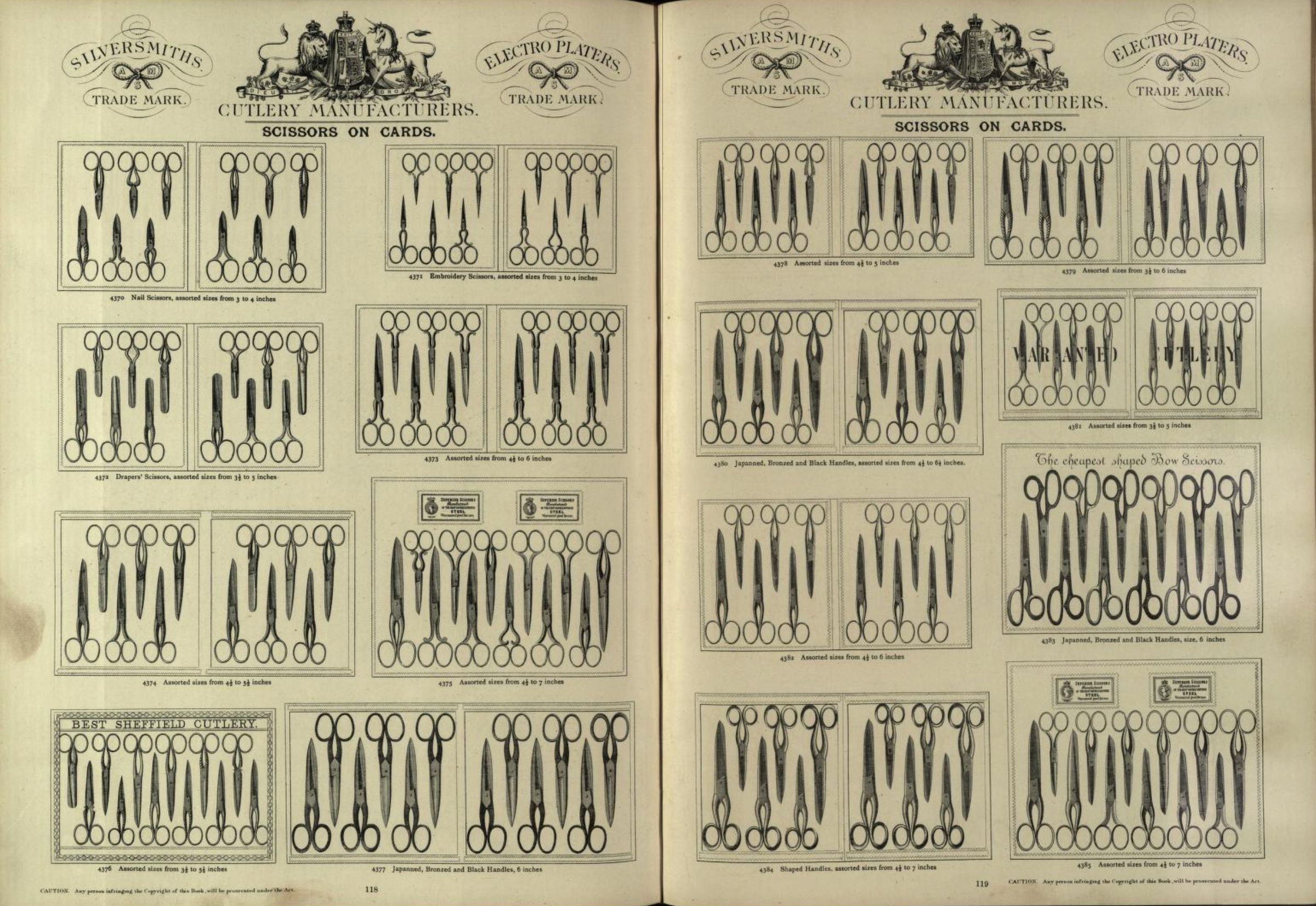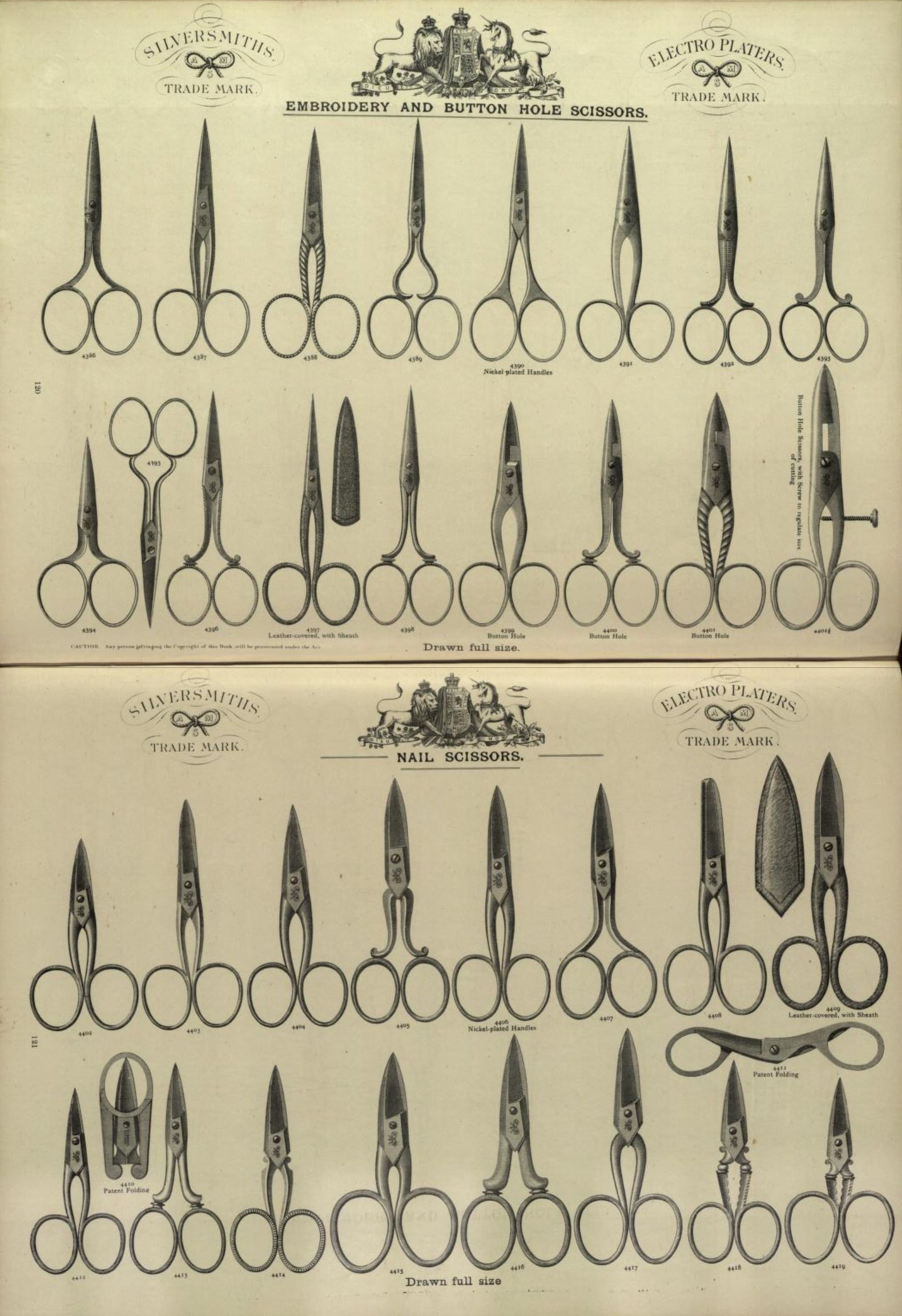 scissors, catalogue, 1800s, england, silver, electro silverDescription