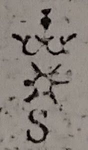 A Thomas Swallow is also listed as a scissor manufacturer at Attercliffe in Gales & Martin (1787). His mark is similar but not identical, consisting of three elements stacked horizontally from top to bottom: An image of a crown; an image of a cross; the letter "S".