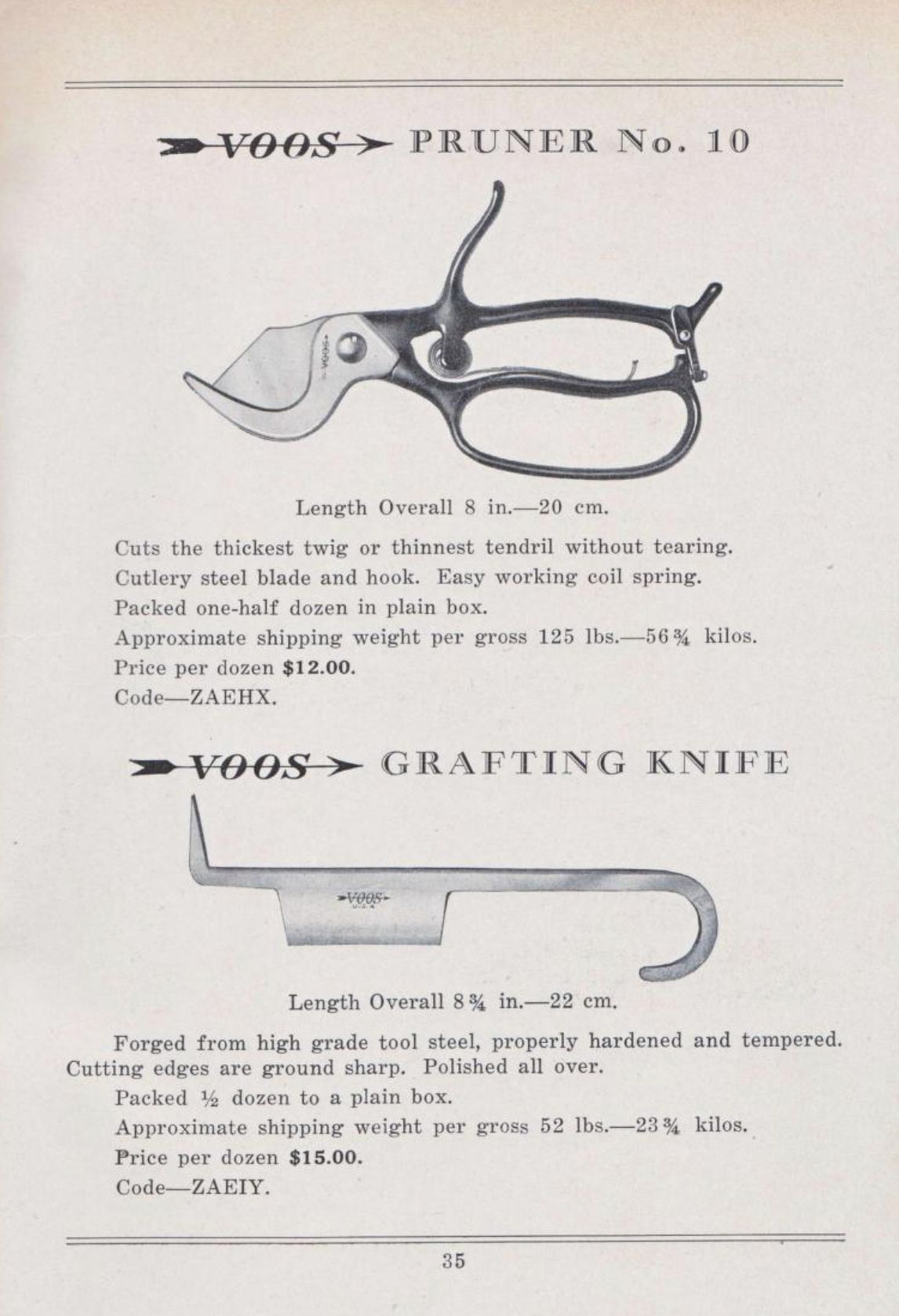 Voos manufactured a range of tools and hardware in New Haven, Connecticut, and their Catalogue Number 5 (dated to the early 1900s, probably post WWI) illustrates a pair of Pruning Shears.Created By