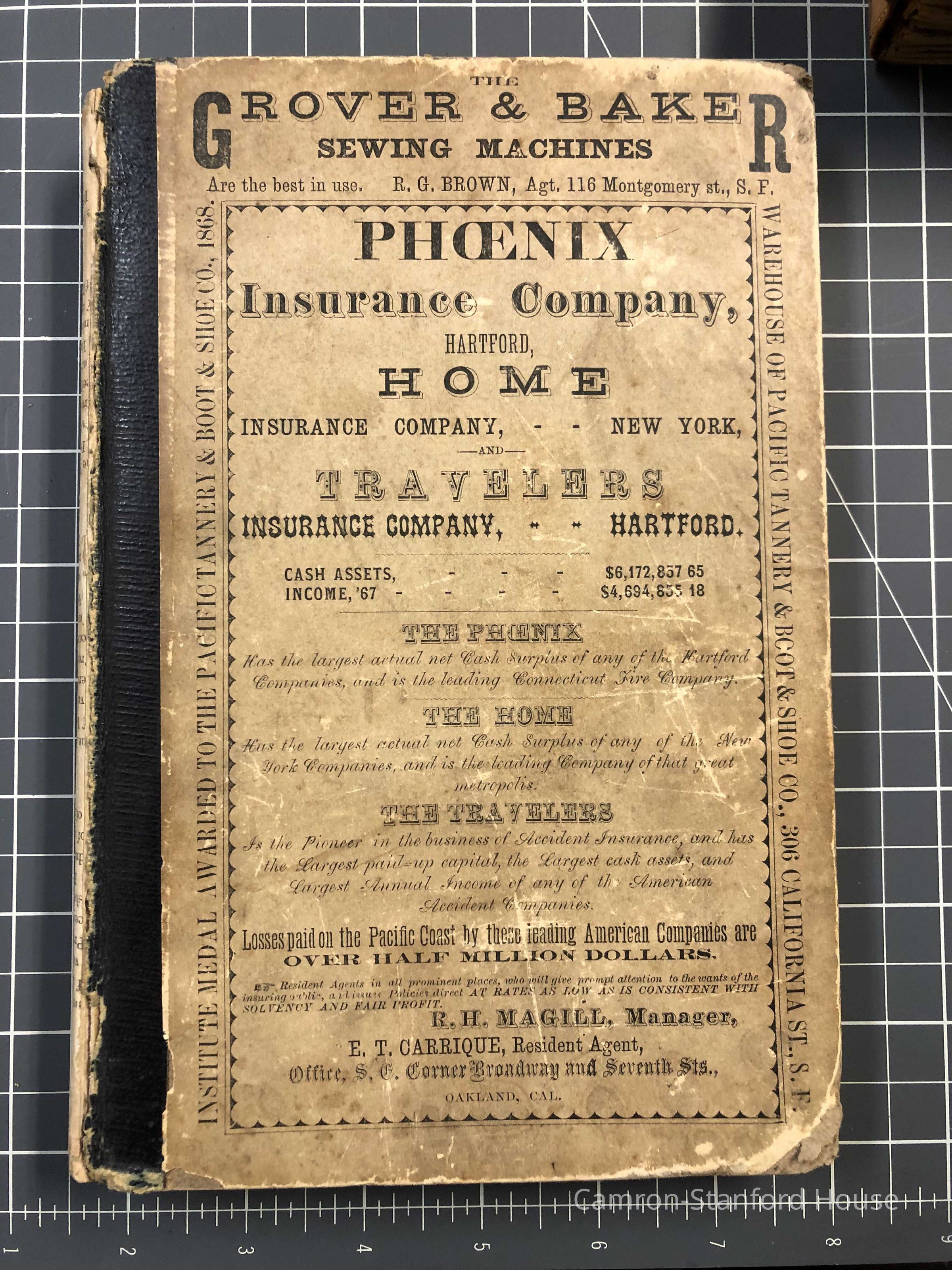City directory from Oakland, 1869. Contains listing of businesses and residences in Oakland, Brooklyn, and Alameda. Also lists public officers, social societies, and brief history of the city of Oakland.