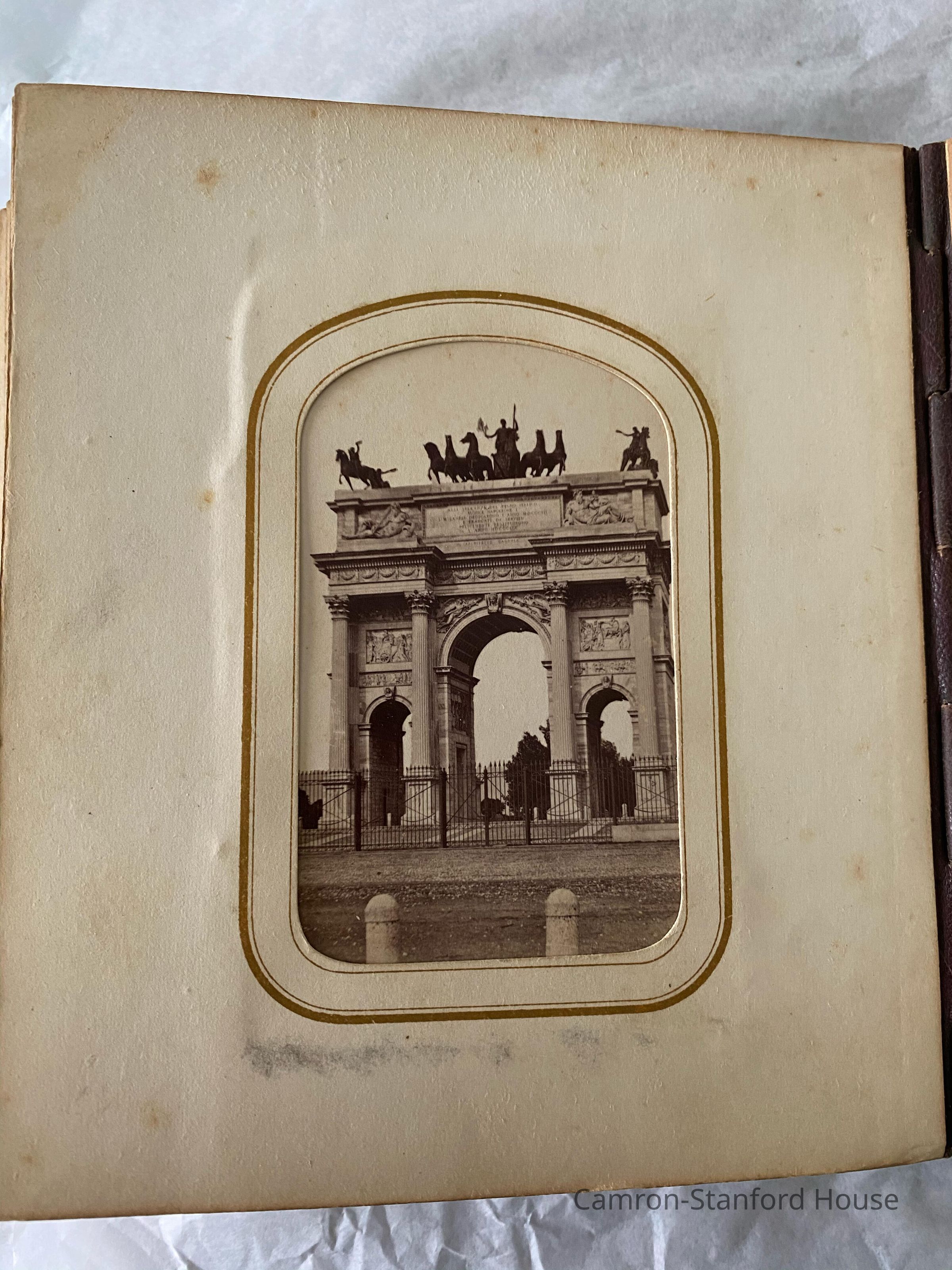 Photograph album containing collection of cards collected at popular tourist sites throughout Europe, including Rome, Florence, and Paris among others. Cards show images of popular local attractions and art pieces. Likely purchased from retail vendors while abroad. Collected by Franklina C. Gray.