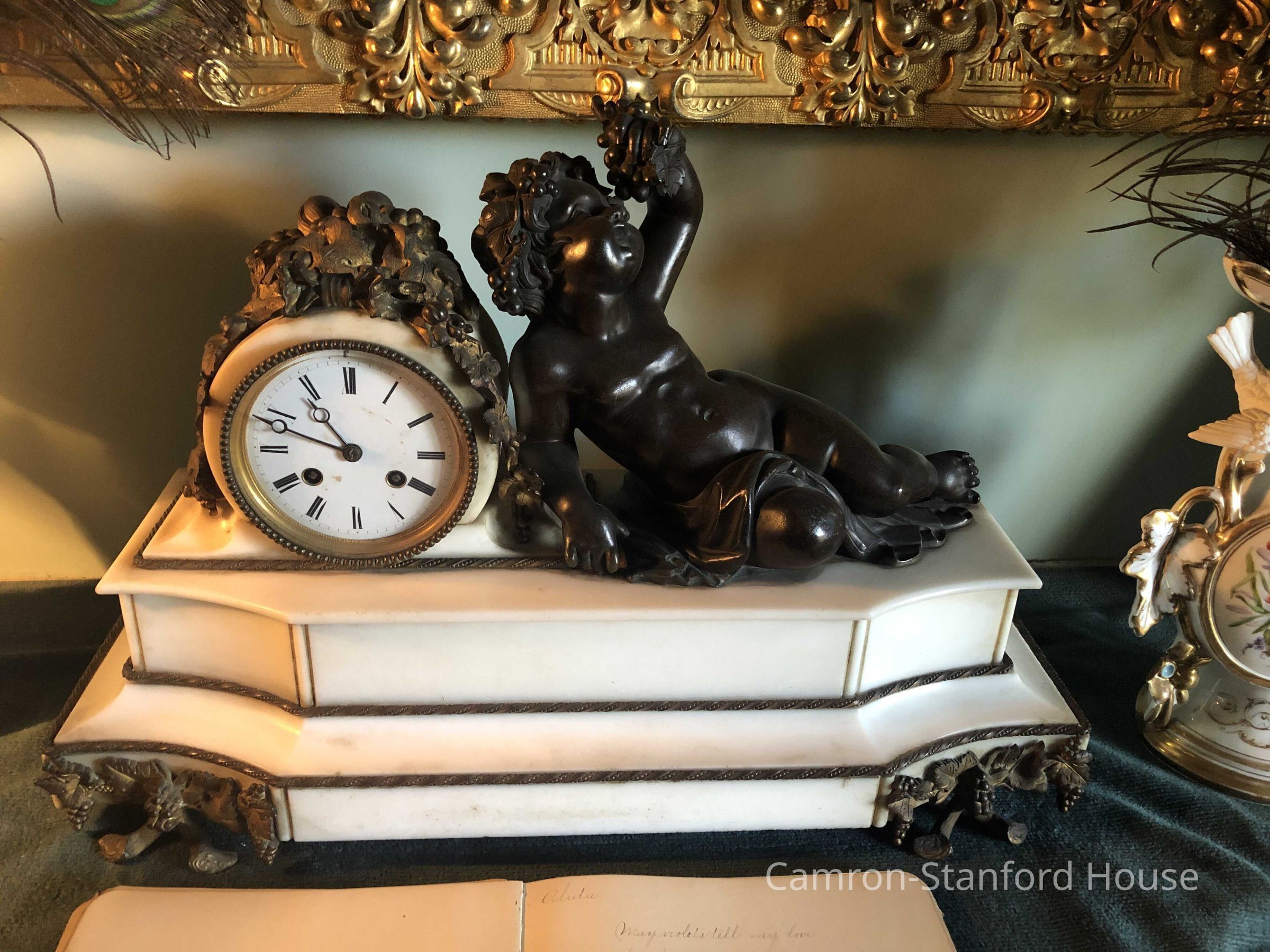 This marble and bronze mantel clock, featuring Bacchus, dates from approximately 1850 and was brought to the house by Matilda when she and her husband, David Hewes, rented the house in 1875.