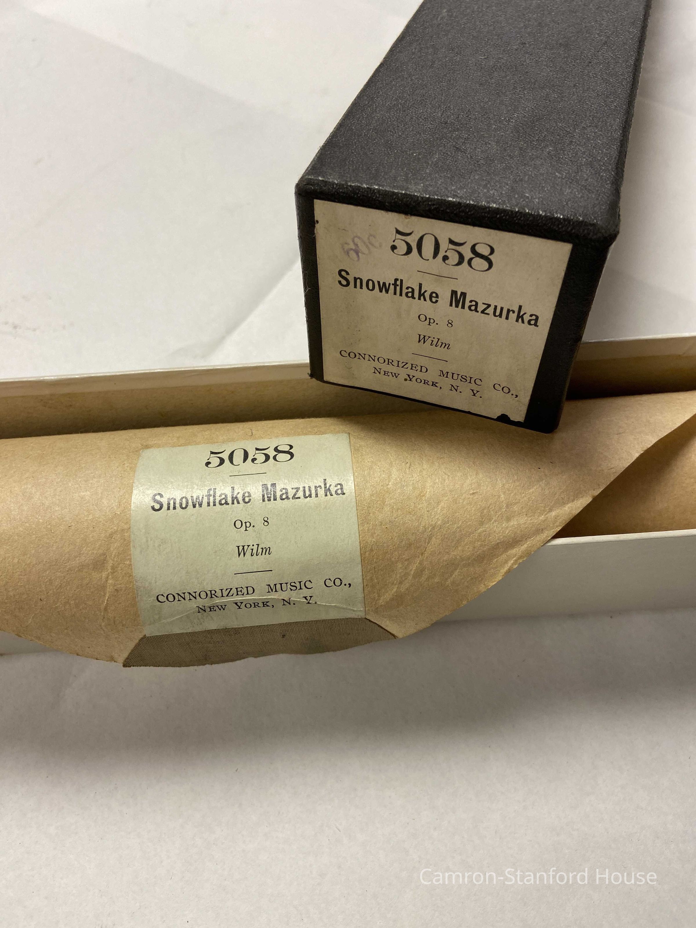 Music roll used with a player piano. Song is titled "Snowflake Mazurka"