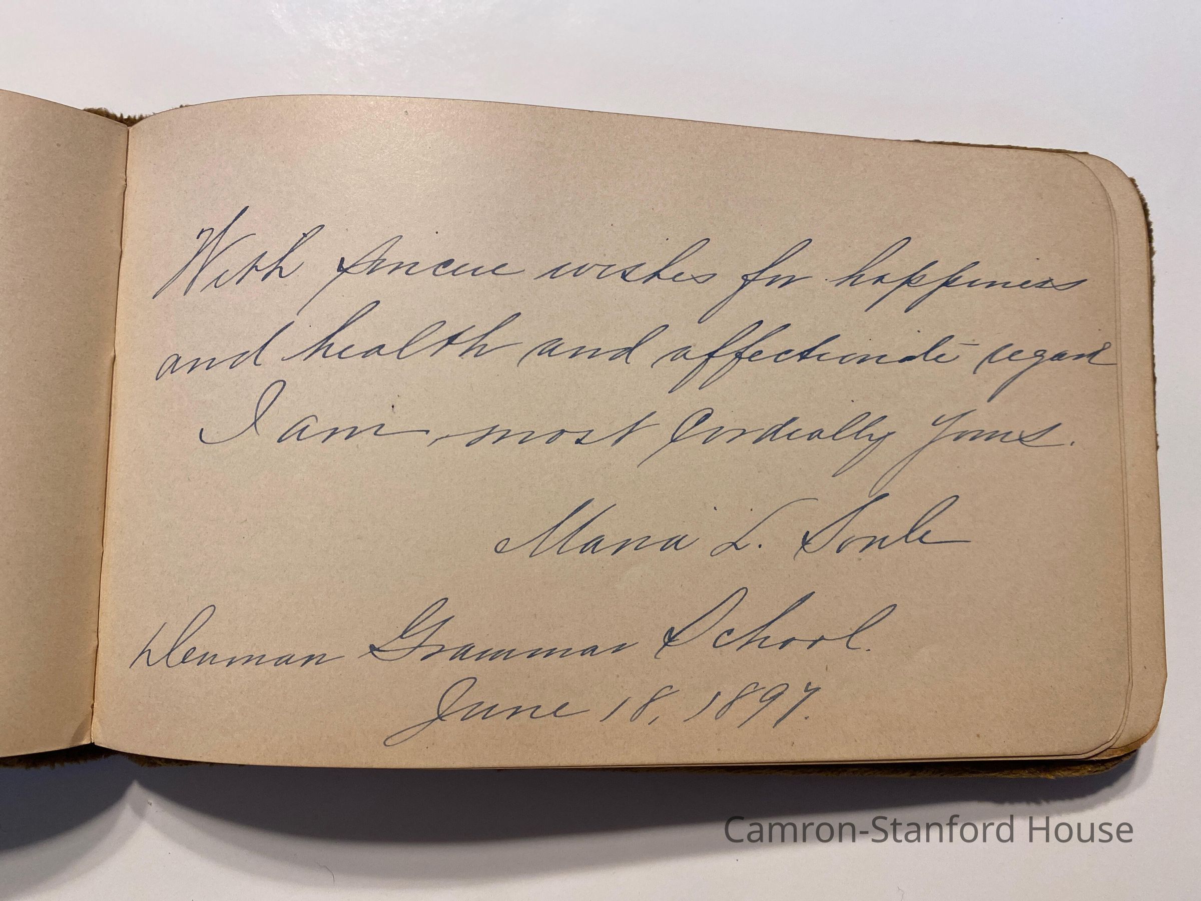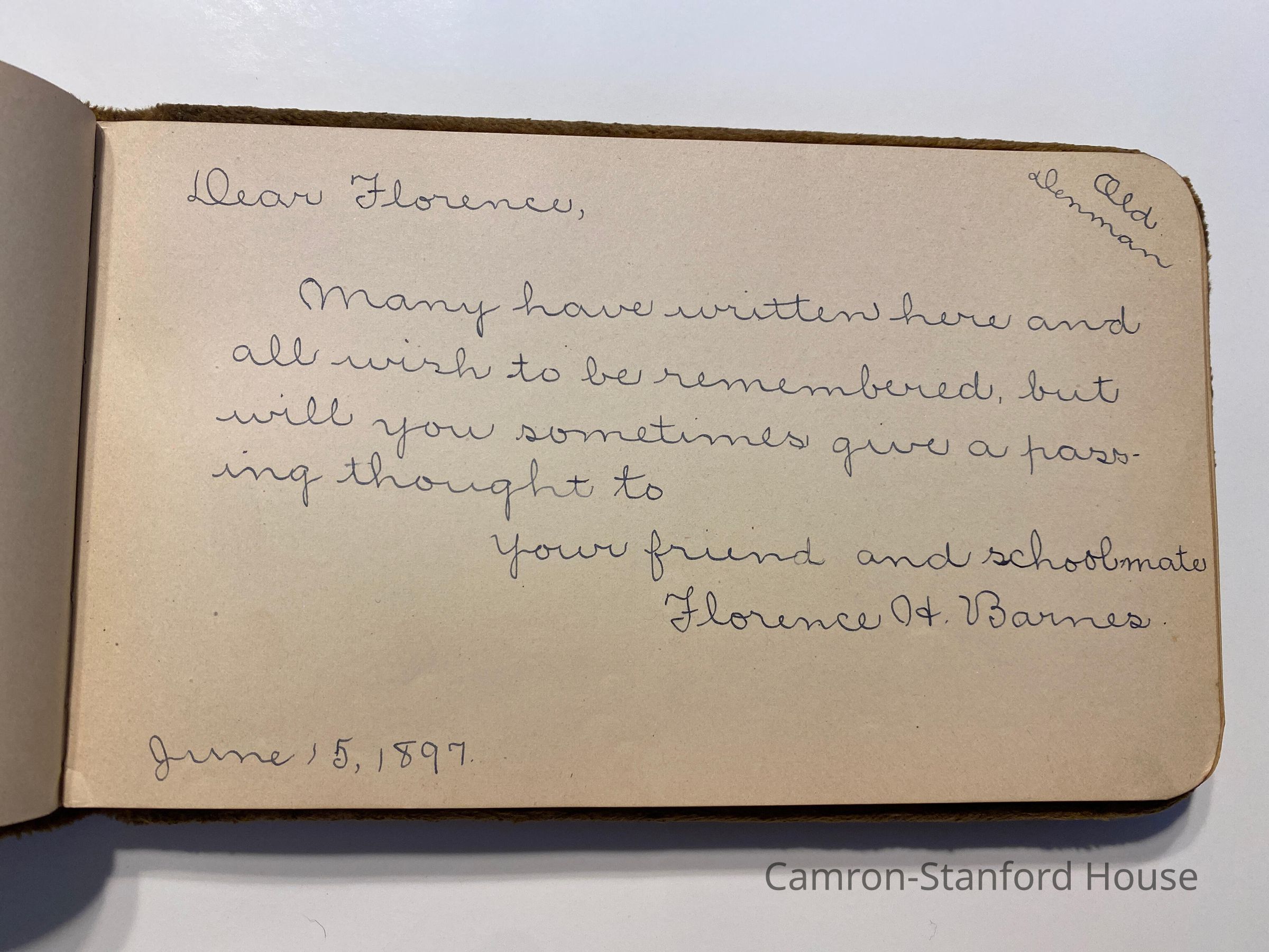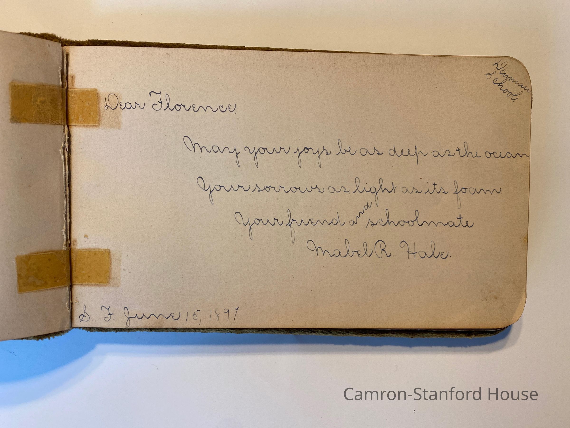 Autograph album featuring signatures and messages from classmates of Frances Buyer of San Francisco.
