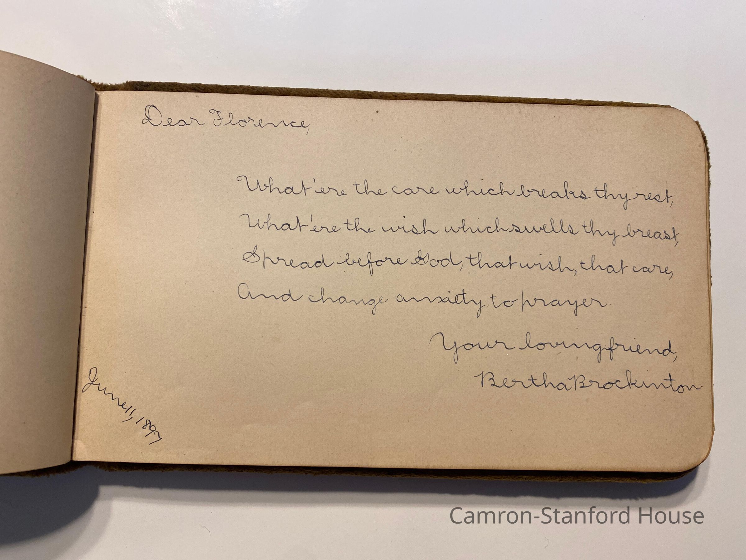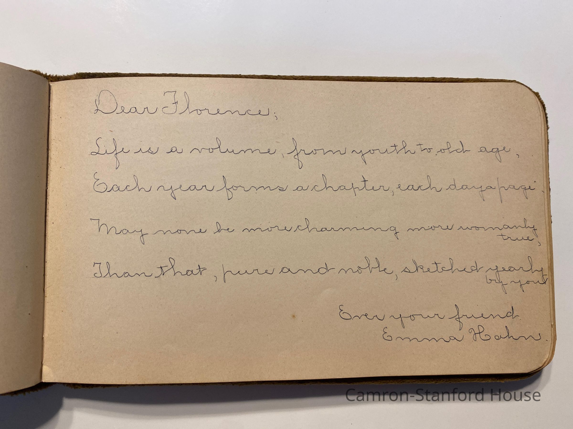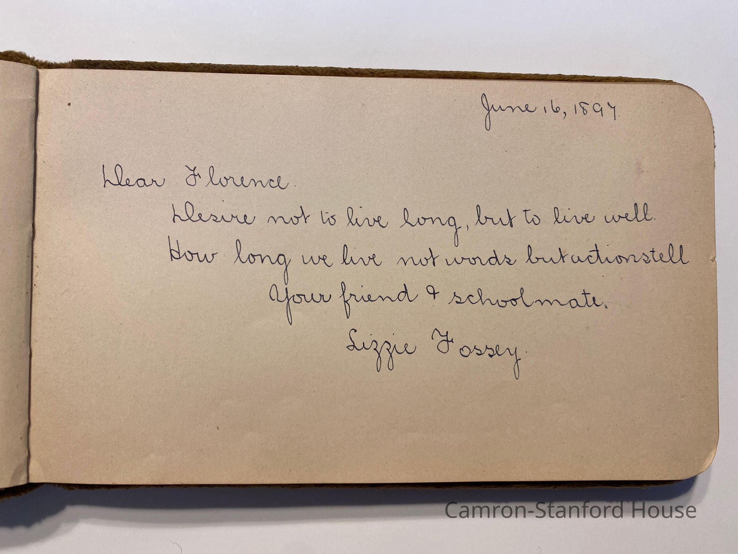 Autograph album featuring signatures and messages from classmates of Frances Buyer of San Francisco.