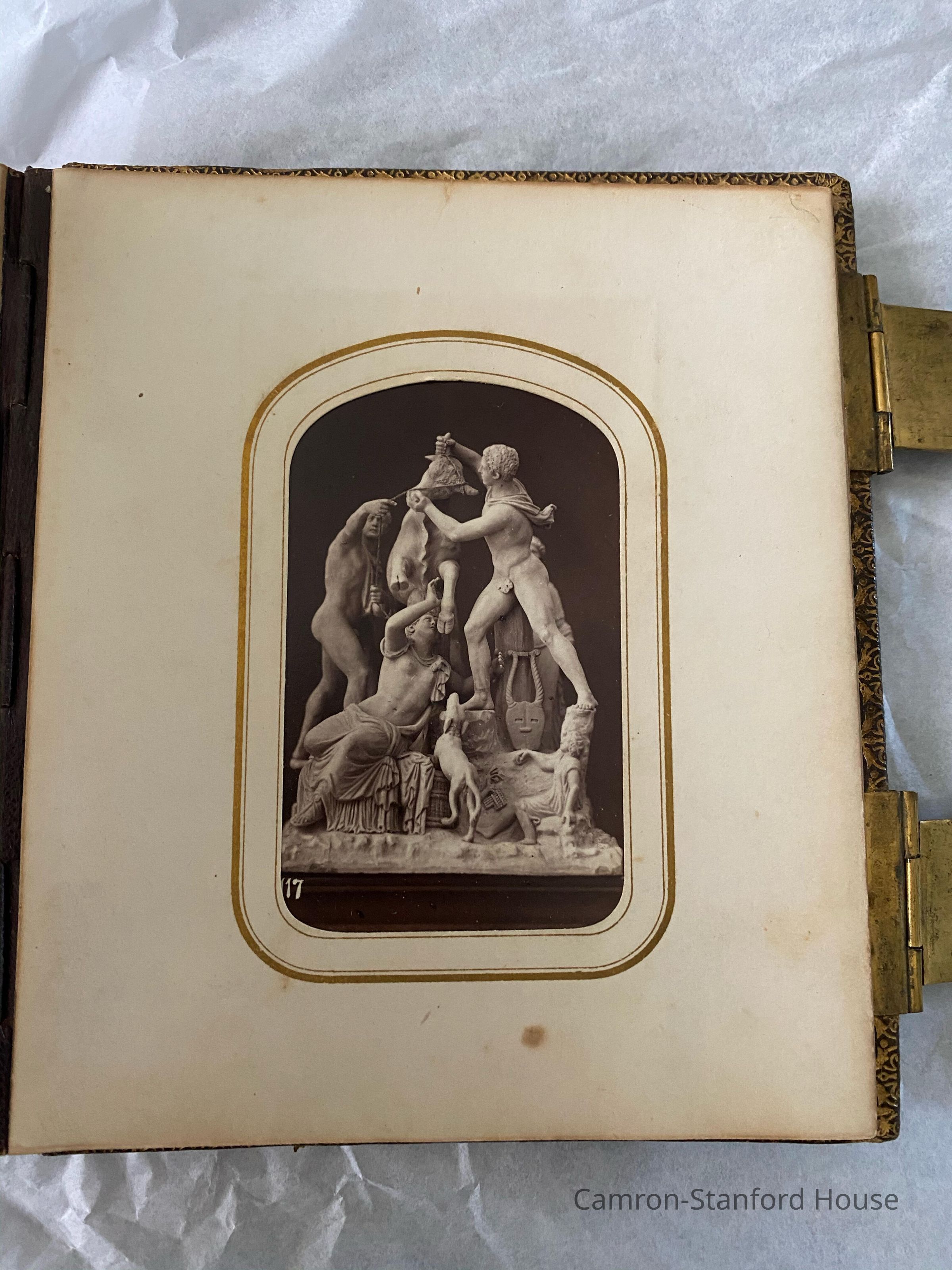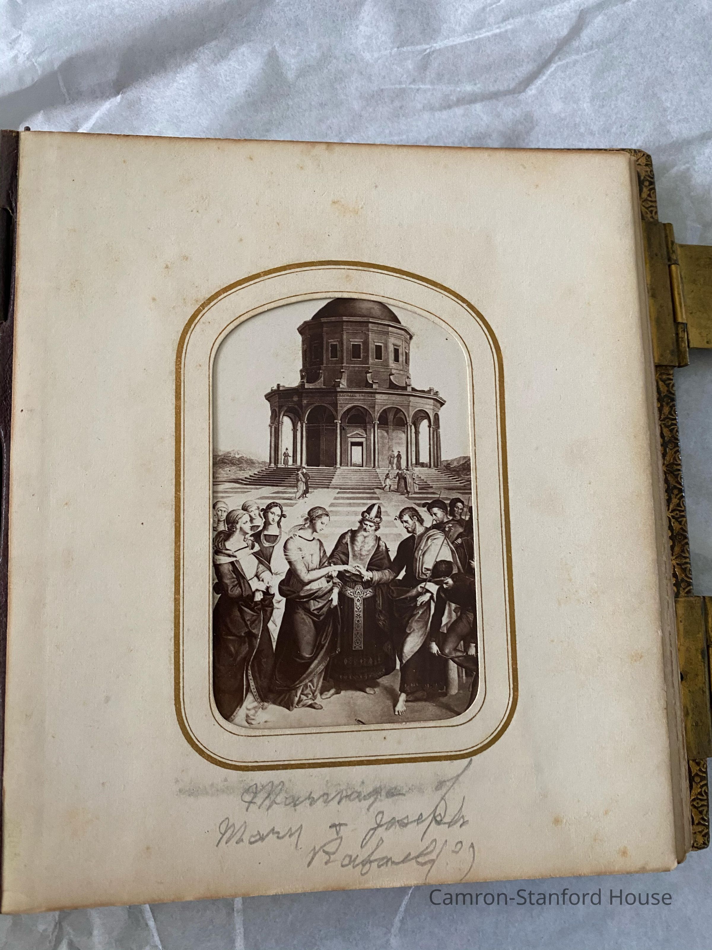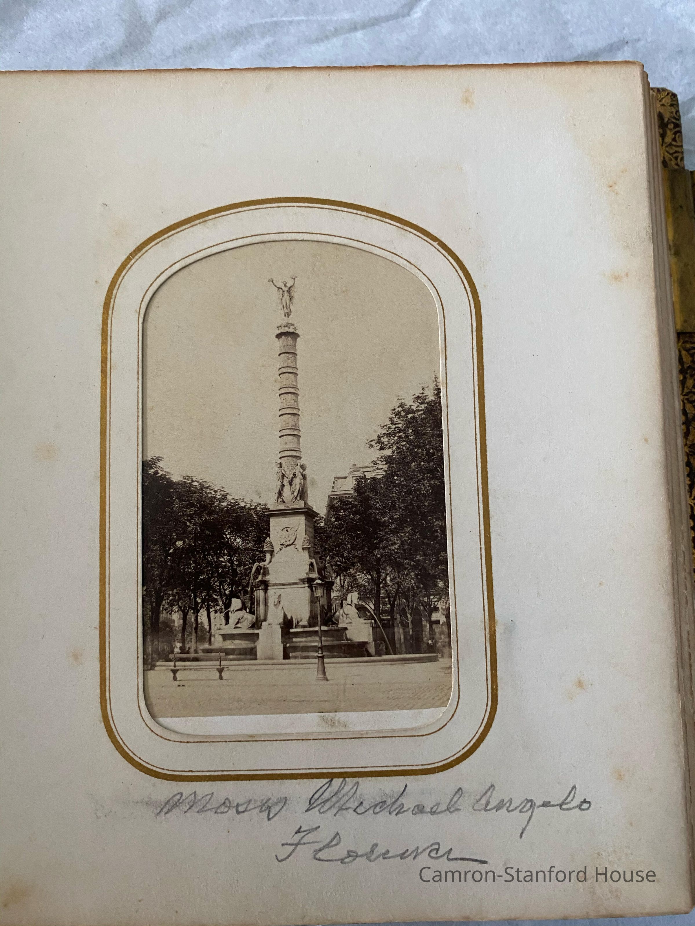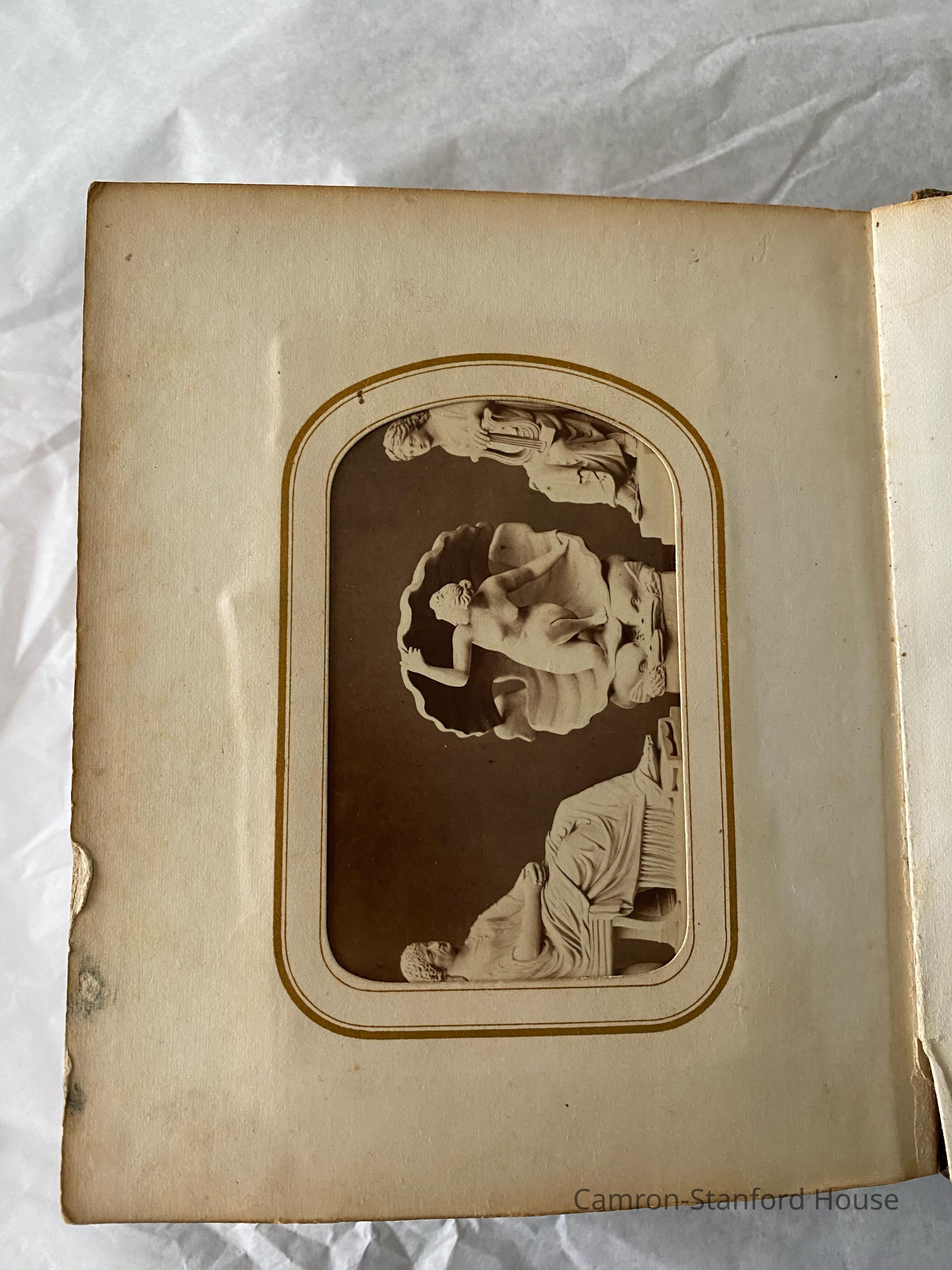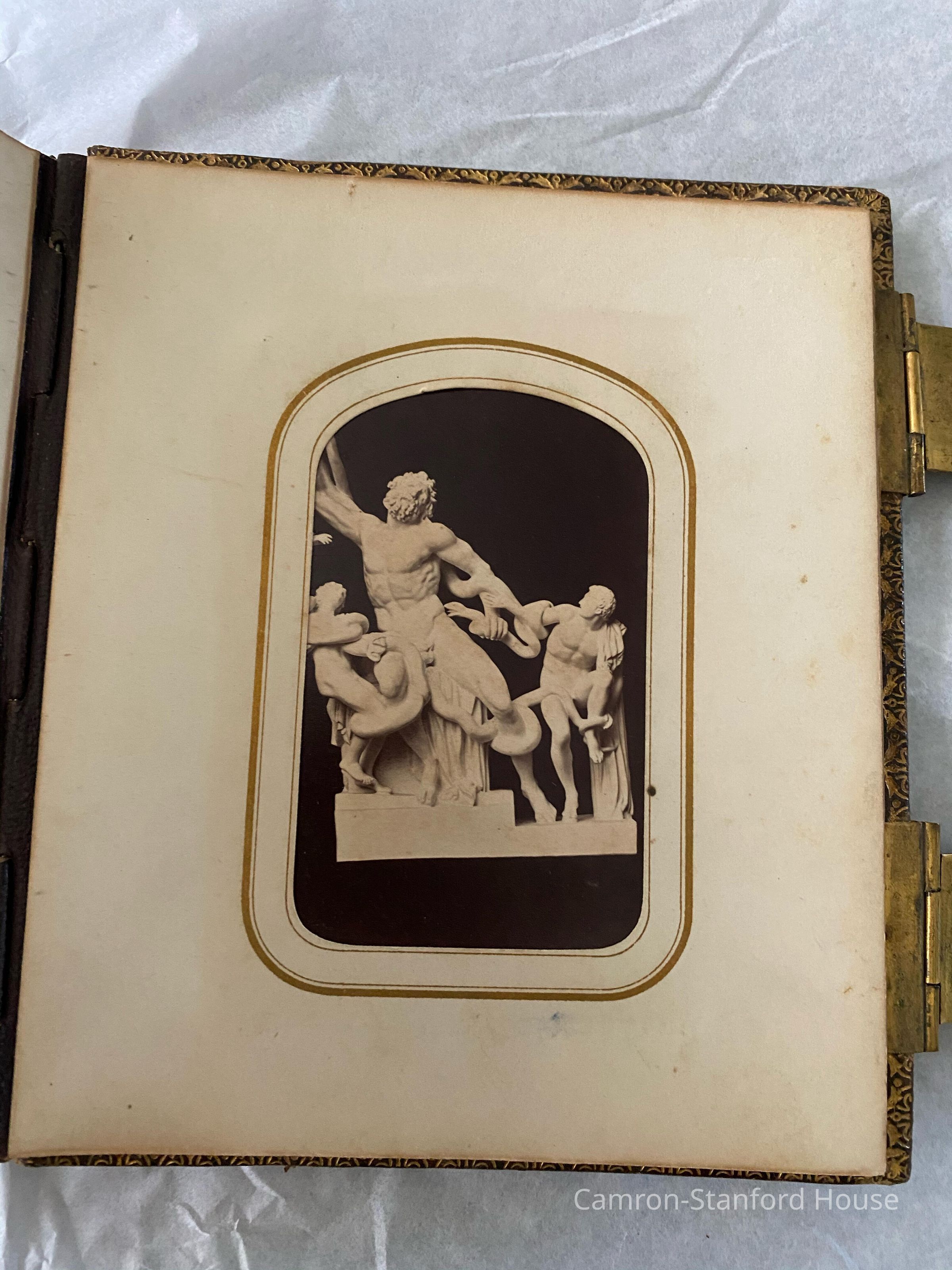 Photograph album containing collection of cards collected at popular tourist sites throughout Europe, including Rome, Florence, and Paris among others. Cards show images of popular local attractions and art pieces. Likely purchased from retail vendors while abroad. Collected by Franklina C. Gray.